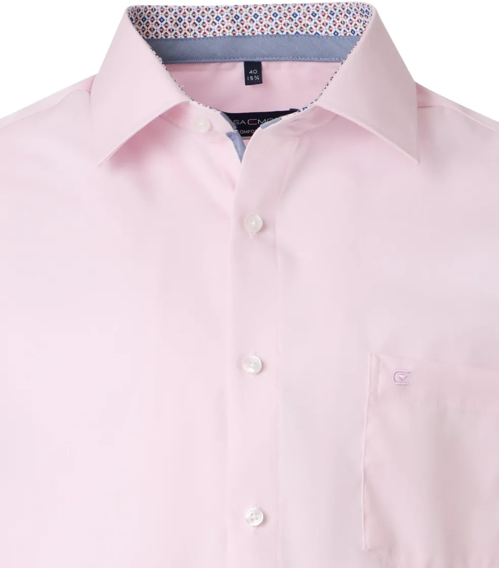 Comfort fit overhemd in een recht gesneden, ongetailleerd model. Dit heren overhemd van CASA MODA heeft lange mouwen in een standaard mouwlengte. Door de uitvoering in een poplin weving is de stof glad, zacht, soepel en egaal. Dit is een van de meest gebruikte wevingen voor overhemden. Het shirt heeft een normale Kent kraag waarbij de boordpunten recht naar beneden wijzen en niet ver uit elkaar staan. Deze kraagvorm is ideaal om zo te dragen maar ook perfect te combineren met een stropdas. Door de speciale behandeling van de stof is dit hemd strijkvrij. Ideaal omdat er geen kreukels in komen tijdens het dragen en ook na het wassen hoeft het shirt niet gestreken te worden. Eventuele kreukels lopen er door de eigen lichaamswarmte uit. De handige borstzak op de linkerborst heeft een subtiel geborduurd logo. Een business shirt dat heerlijk draagt en prachtig is afgewerkt.