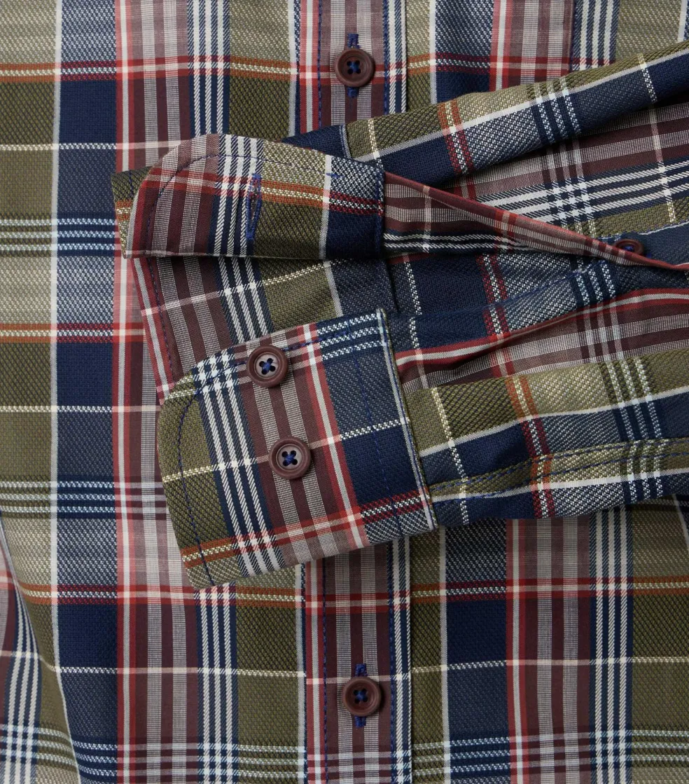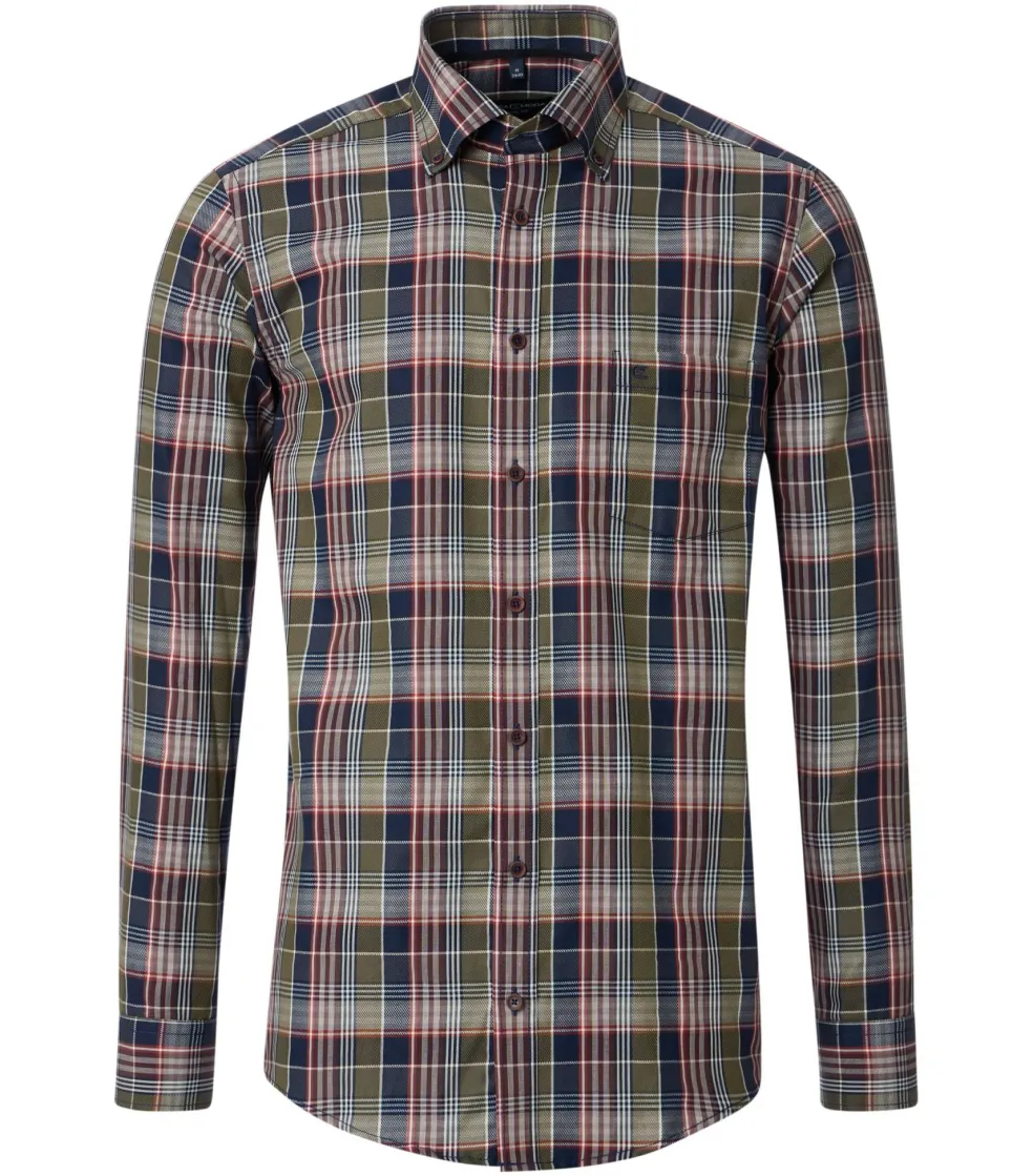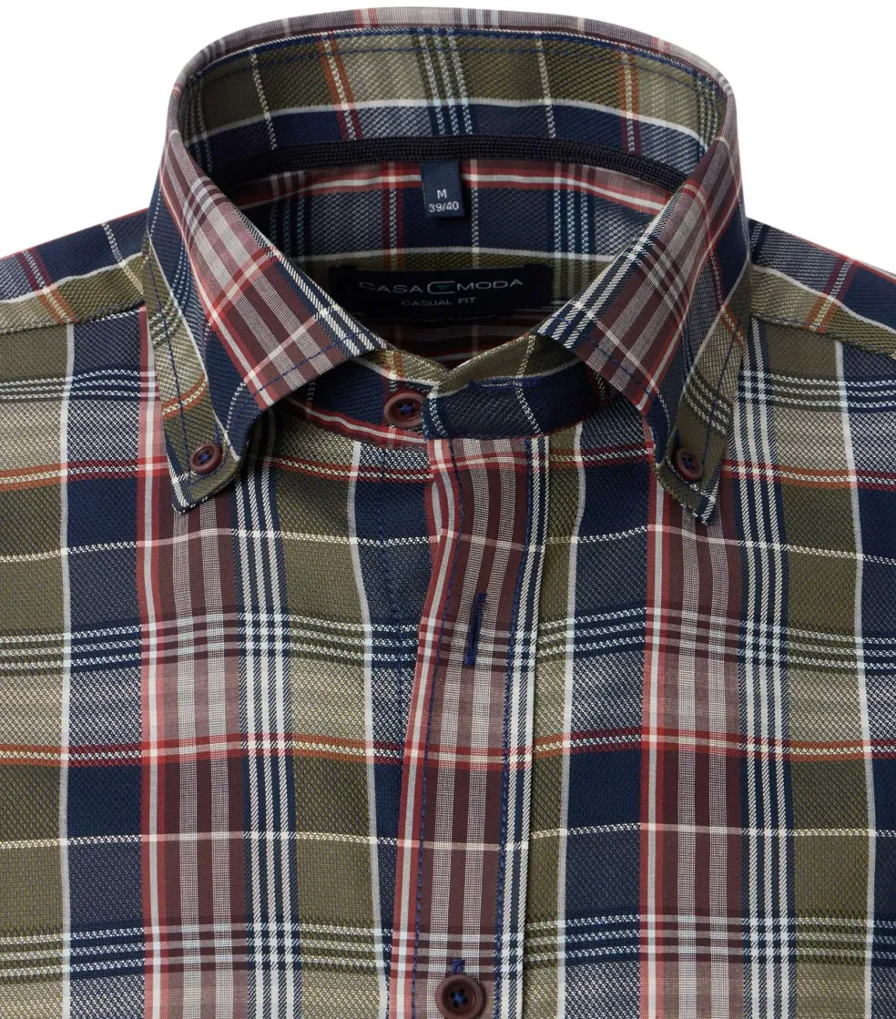 CASA MODA Sport casual fit overhemd, dobby, blauw, groen, rood en wit geruit