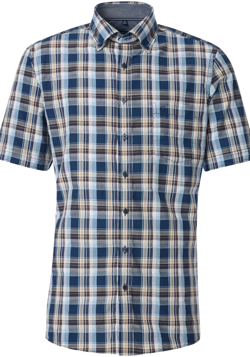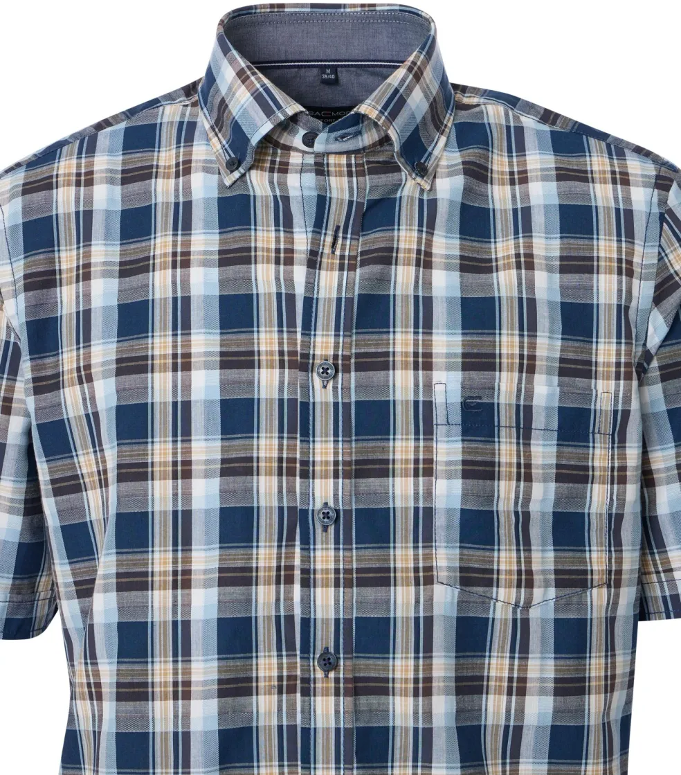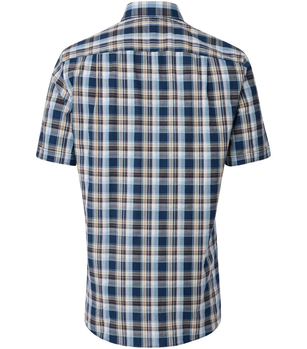 CASA MODA Sport comfort fit overhemd, korte mouw, chambray, blauw geruit