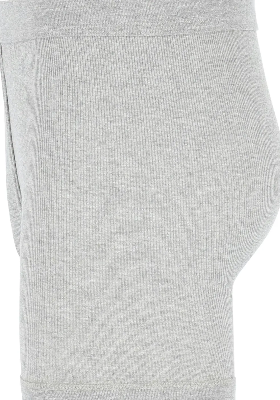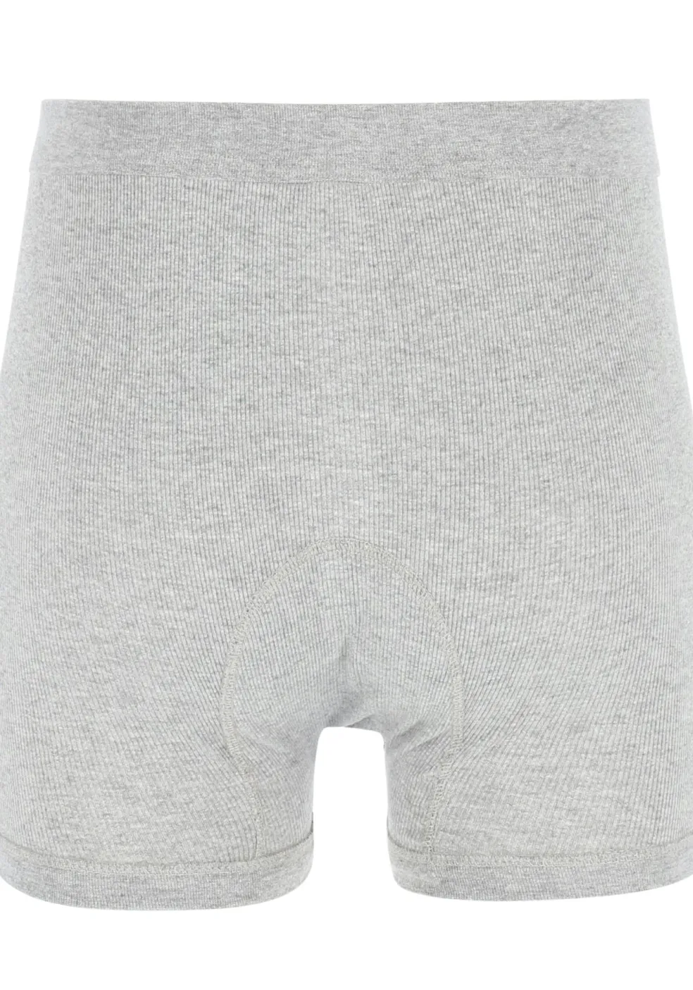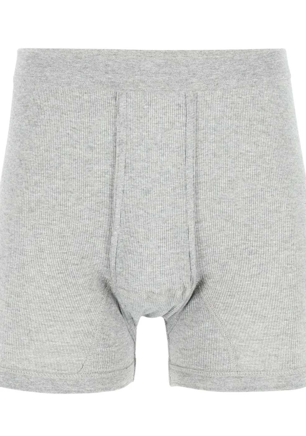 Grijze heren boxer met langere pijpjes in een uitvoering met gulp in een 100% katoenen dubbelrib. Model met lange pijpen, dubbel uitgevoerd voorstuk, handige gulp, omgezoomde pijpjes en een brede tailleband van hetzelfde materiaal als de boxer met daarin elastiek. De pijpen hebben geen naden aan de zijkanten of aan de achterkant. Verkrijgbaar van maat M tot en met maat 3XL.
