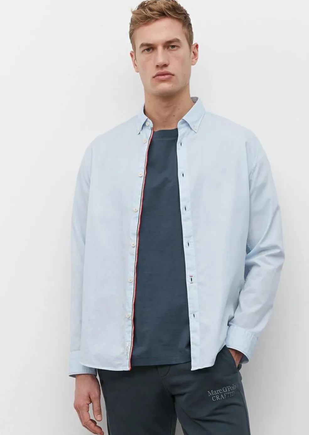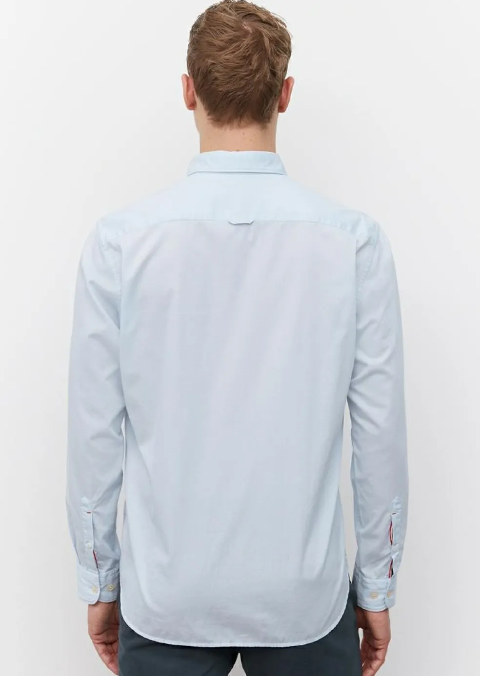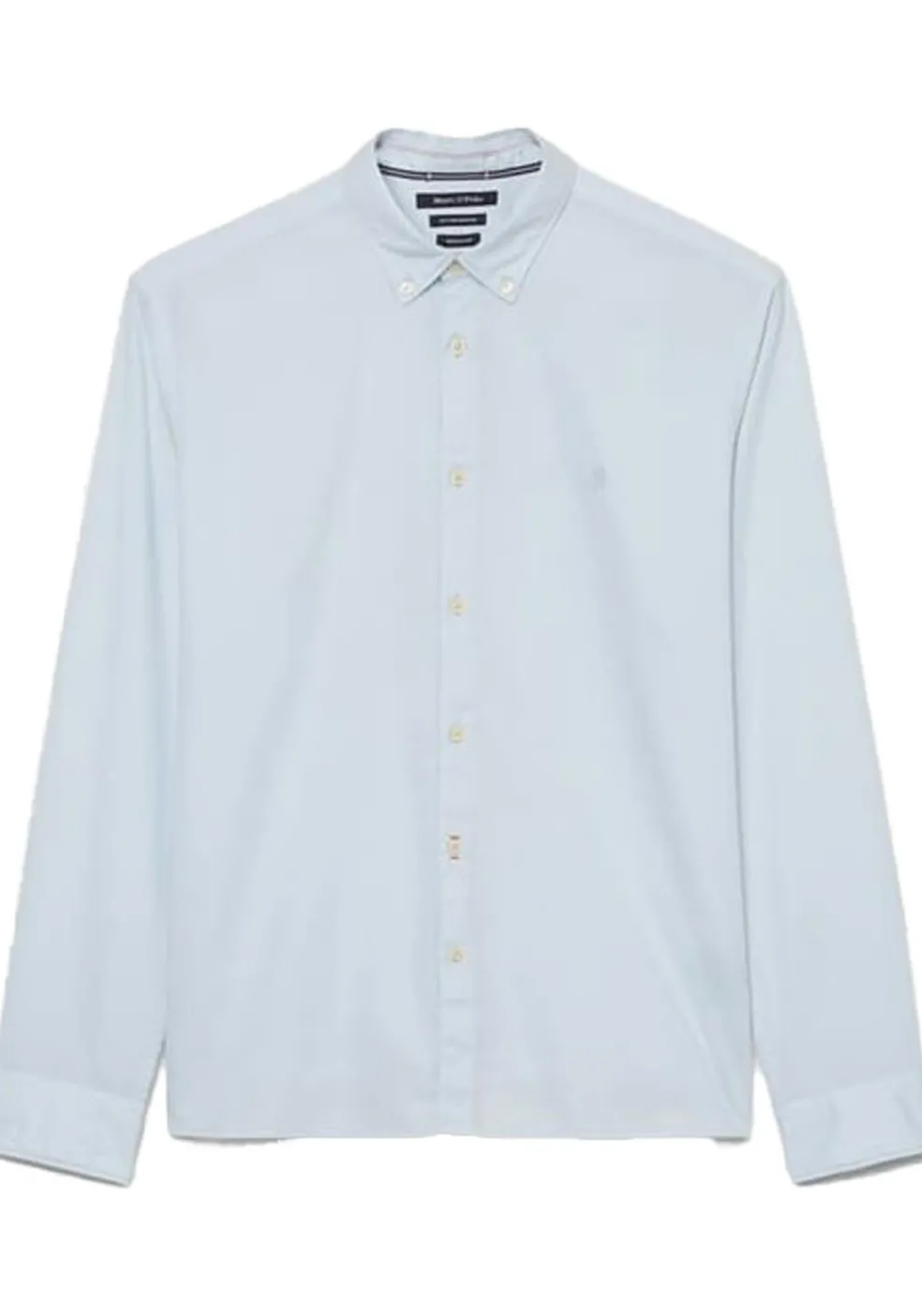 Lichtblauw Modern en stijlvol shirt wat heerlijk draagt en altijd goed staat. Het overhemd van Marc O’Polo heeft lange mouwen. Een heren overhemd met lange mouwen is ideaal voor iedere gelegenheid. Door de uitvoering in een structuurweving zit er wat afwisseling in de stof voor een stijlvol resultaat. Het shirt heeft een sportieve button-down kraag die meestal zonder stropdas gedragen wordt. Door de knoopjes in de boordpunten waarmee de punten van de kraag vastgezet kunnen worden aan het hemd, blijft de kraag mooi zitten. Het hemd heeft geen borstzak. Model met lange mouwen.