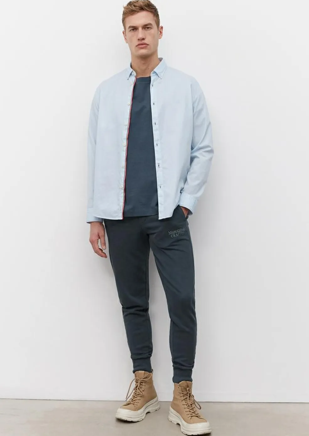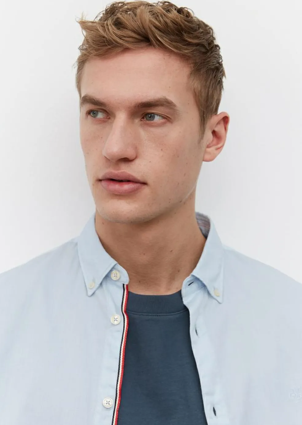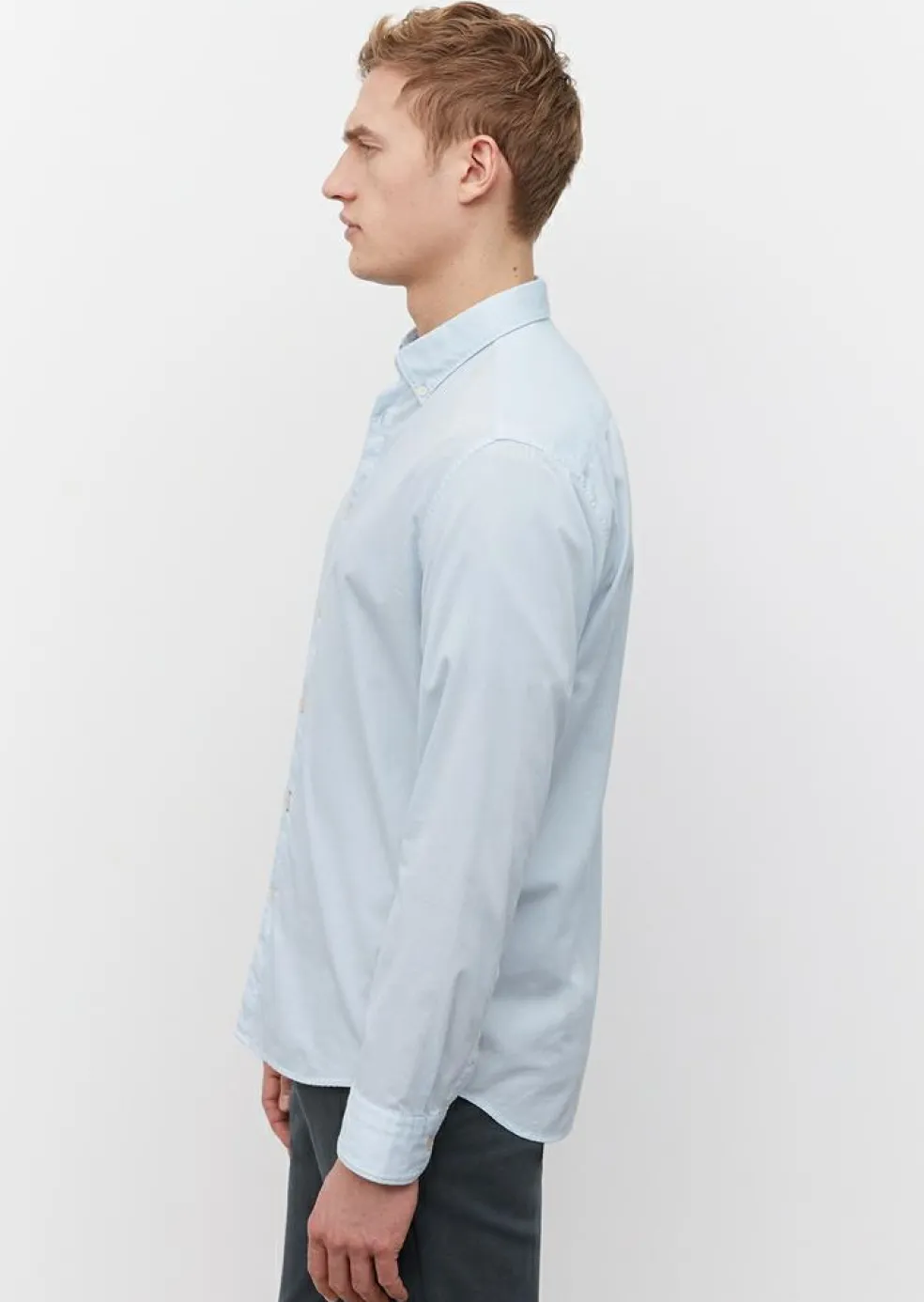 Lichtblauw Modern en stijlvol shirt wat heerlijk draagt en altijd goed staat. Het overhemd van Marc O’Polo heeft lange mouwen. Een heren overhemd met lange mouwen is ideaal voor iedere gelegenheid. Door de uitvoering in een structuurweving zit er wat afwisseling in de stof voor een stijlvol resultaat. Het shirt heeft een sportieve button-down kraag die meestal zonder stropdas gedragen wordt. Door de knoopjes in de boordpunten waarmee de punten van de kraag vastgezet kunnen worden aan het hemd, blijft de kraag mooi zitten. Het hemd heeft geen borstzak. Model met lange mouwen.