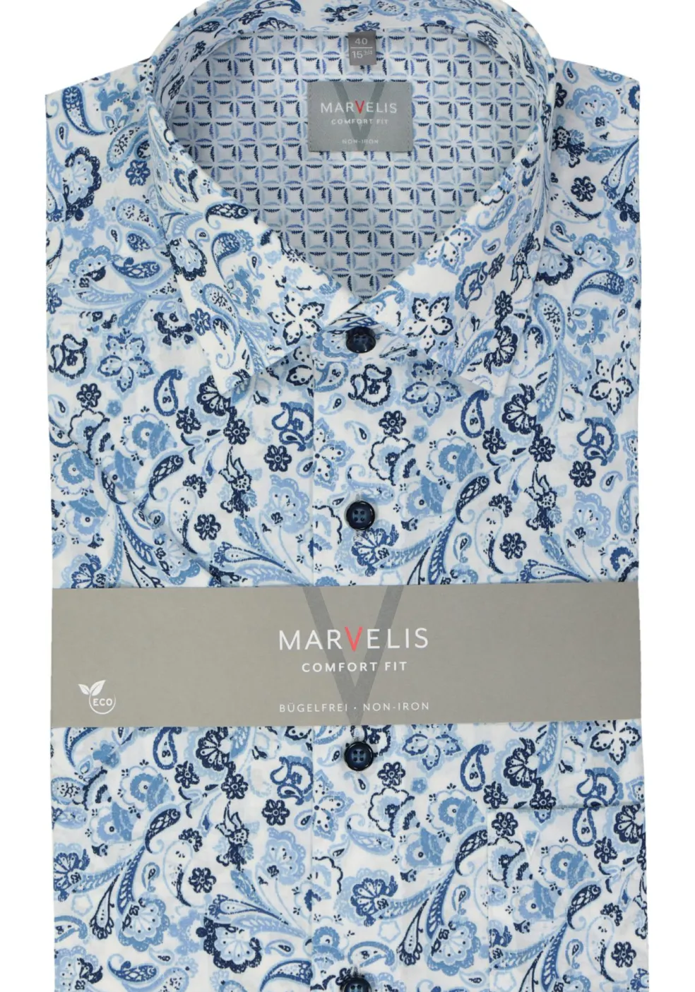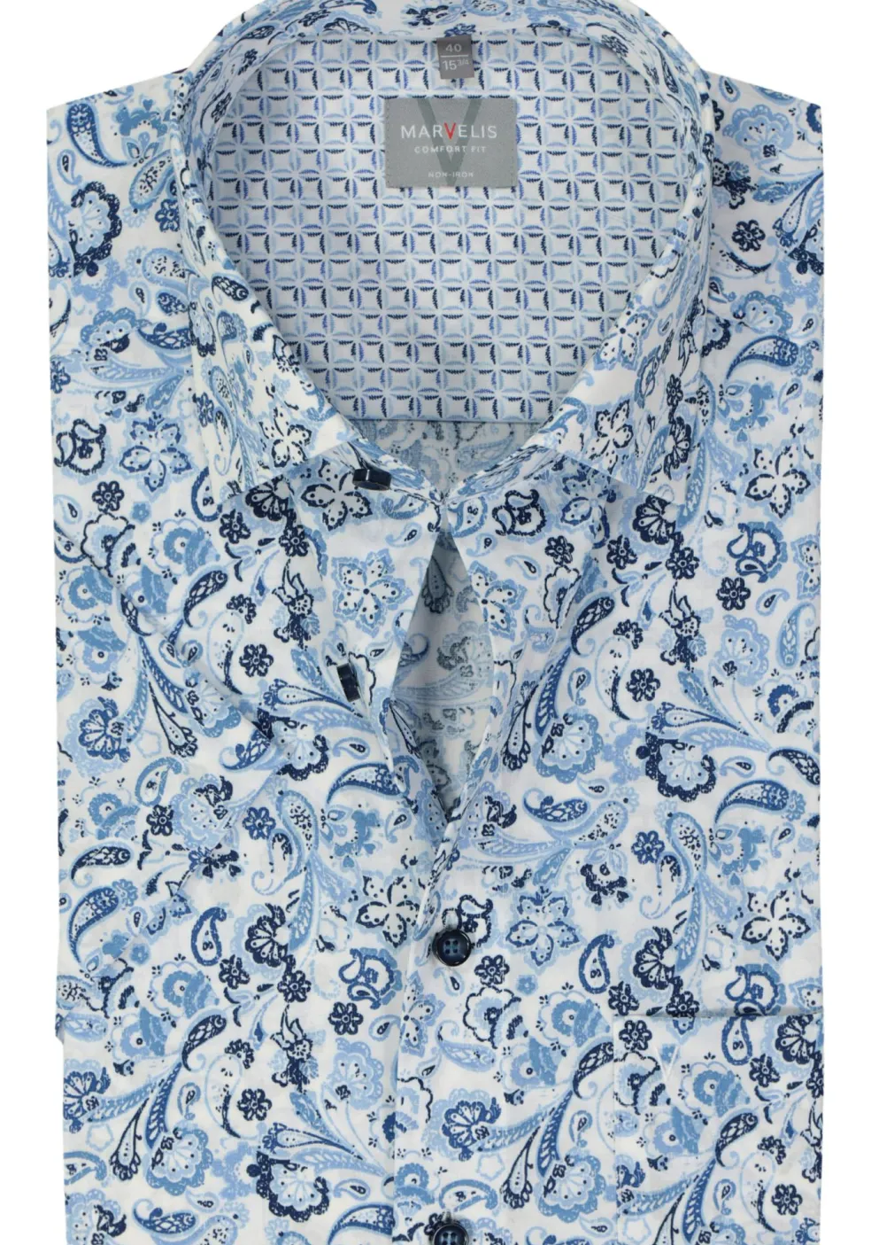 MARVELIS comfort fit overhemd, korte mouw, popeline, lichtblauw dessin