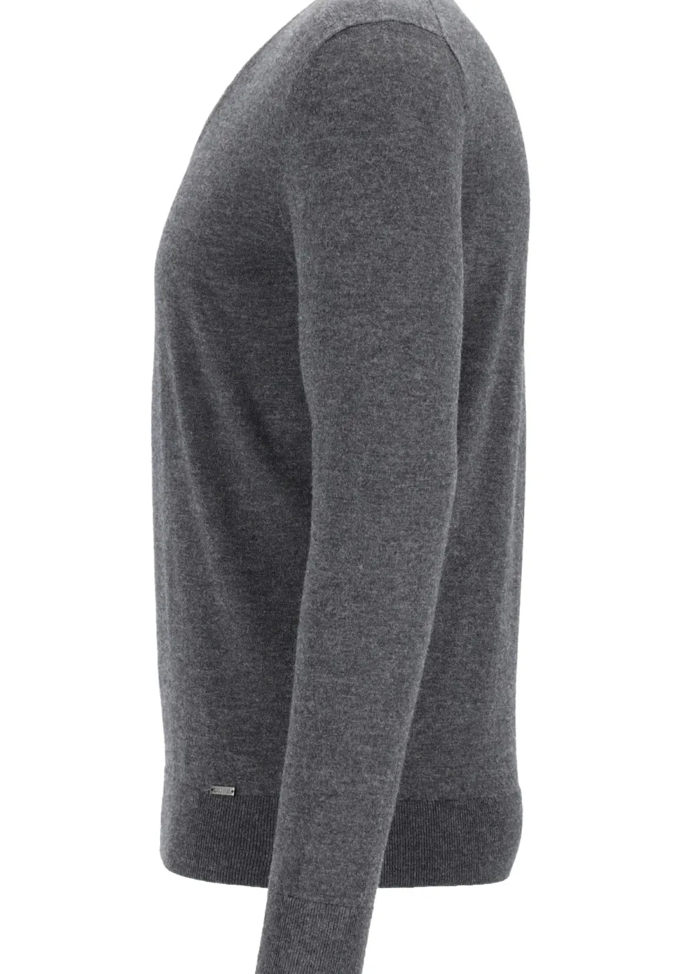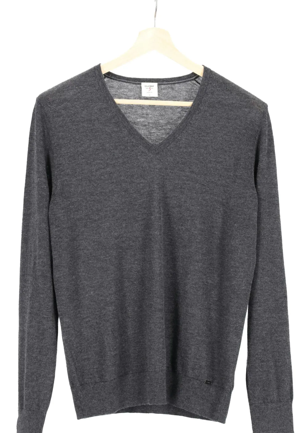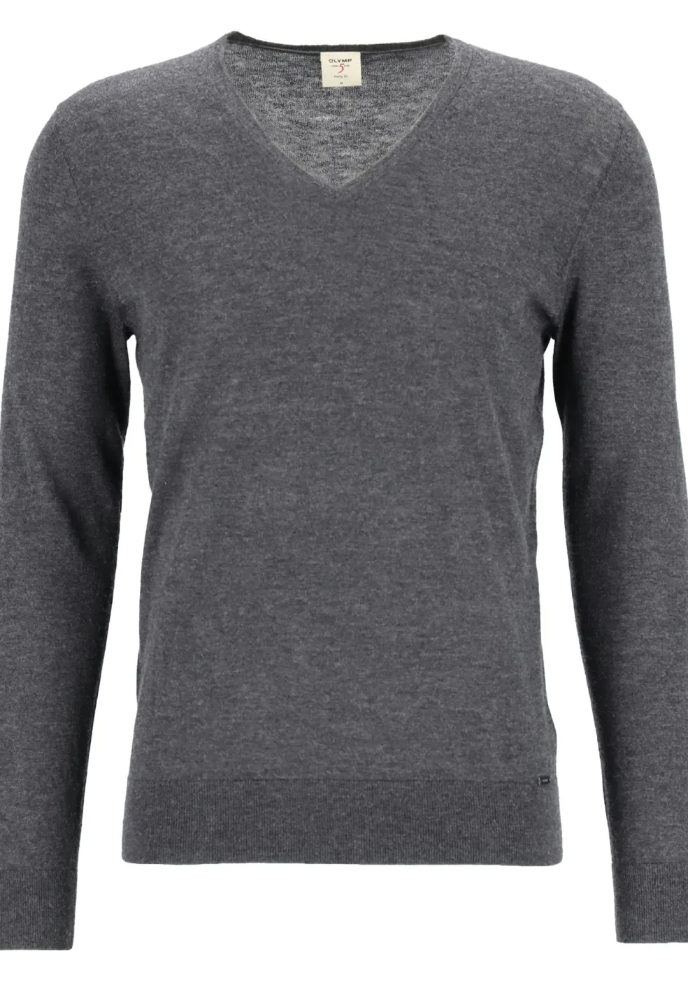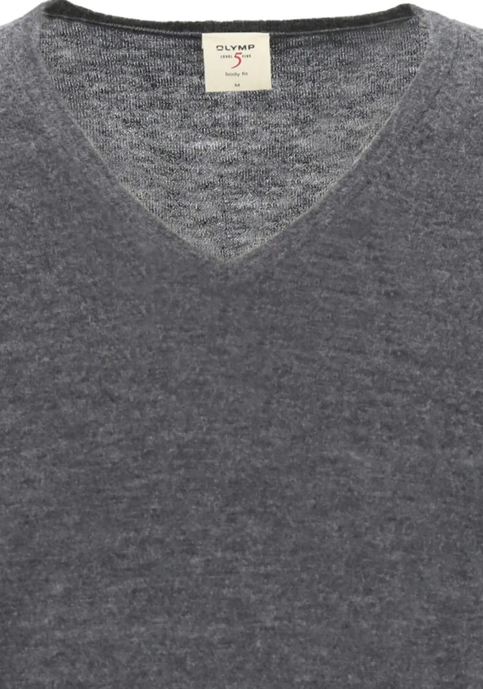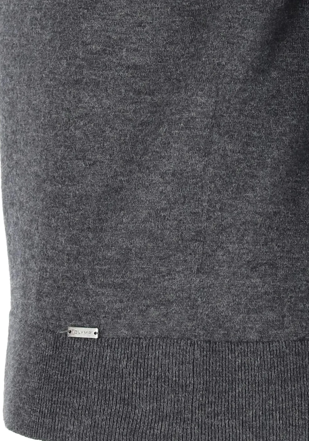 OLYMP Level 5 heren trui met een V-hals. Dunne antraciet grijze herentrui in een slim fit pasvorm. Gemaakt voor de modebewuste slanke man, die er ten alle tijden tiptop uit wil zien. De trui is gemaakt van de allerbeste merino wol vermengd met 15% zijde. De OLYMP heren trui voelt hierdoor zo zacht aan dat het draagcomfort erg hoog is. Door het mengsel van 85% wol en 15% zijde, heeft de herentrui een mooie uitstraling en komt de donker grijze kleur goed tot zijn recht. De trui is nauwsluitend en zal dat ook blijven, zelfs na diverse wasbeurten. Deze mooie slim fit OLYMP Level 5 herentrui is voorzien van een V-hals, die net als de manchetten en de onderste boord mooi in vorm blijft.
