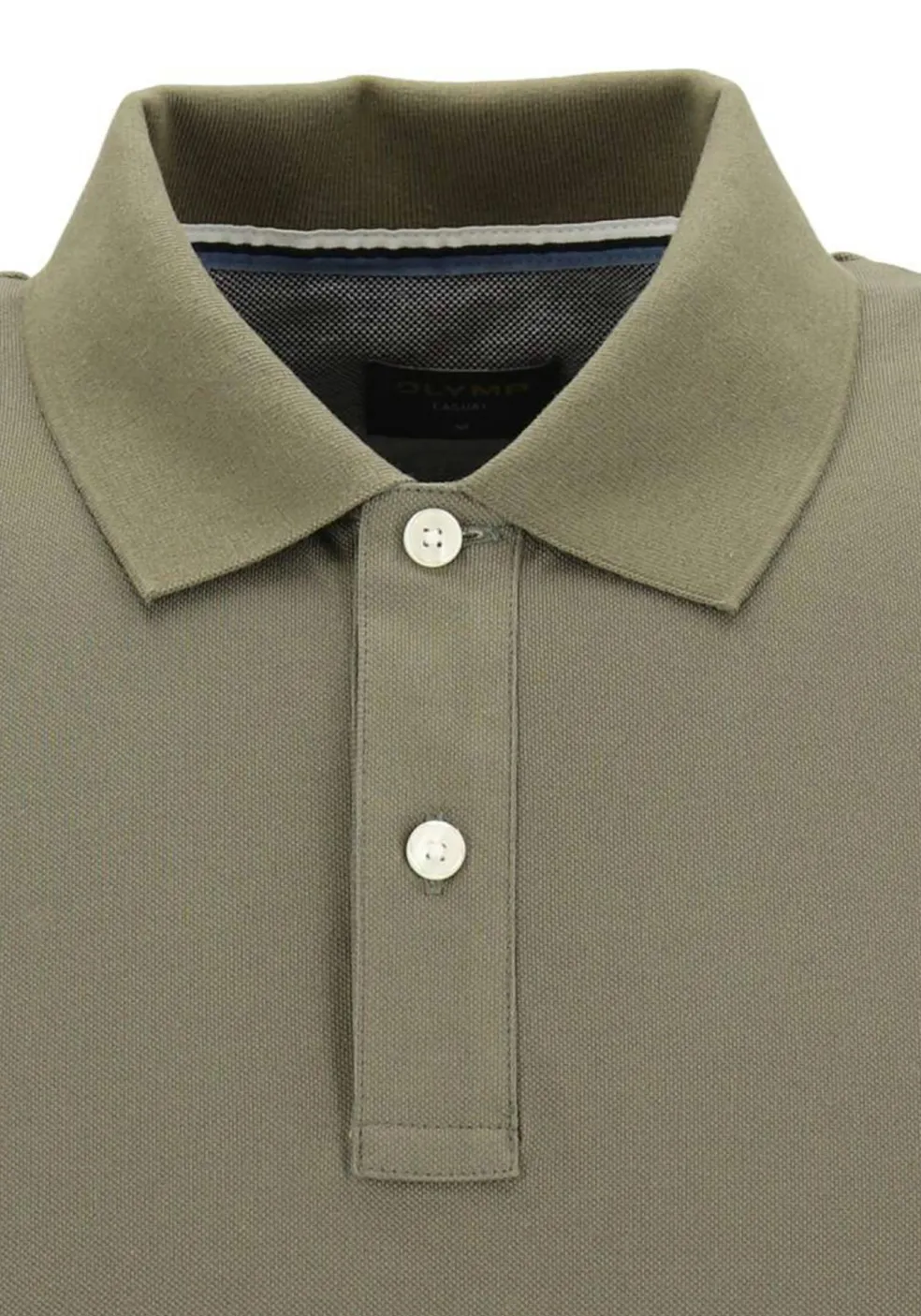 Olijfgroen OLYMP poloshirt. Bij de OLYMP polo Casual in een modern fit pasvorm is de taille iets ingenomen voor een moderne uitstraling zonder in te leveren op de bewegingsvrijheid. De heren polo van OLYMP heeft korte mouwen. Heerlijk voor de warme dagen, maar ook fijn voor de mannen die gewoon graag een polo shirt met korte mouwen dragen. Door de uitvoering in een pique breimethode, de klassieker voor het polo shirt, ontstaat een stevige, ademende stof met een subtiel reliëf. Voor een moderne uitstraling ontbreekt de borstzak bij dit poloshirt. Fijn afgewerkt met een verstevigde elastische boord. Een polo die makkelijk is in het onderhoud (easycare).