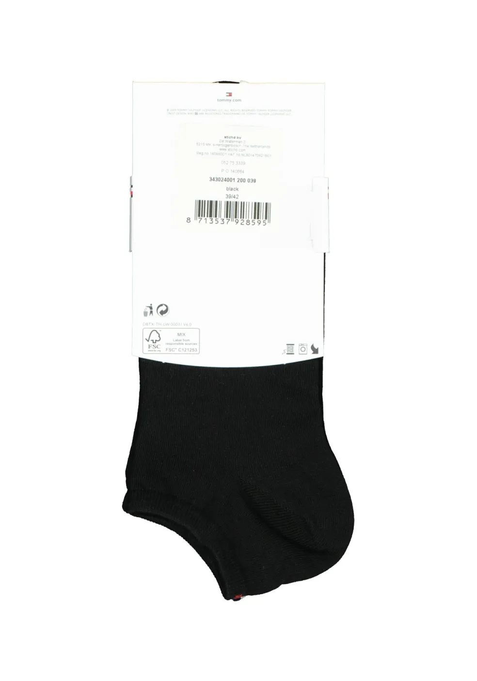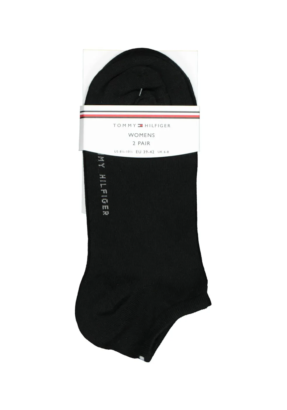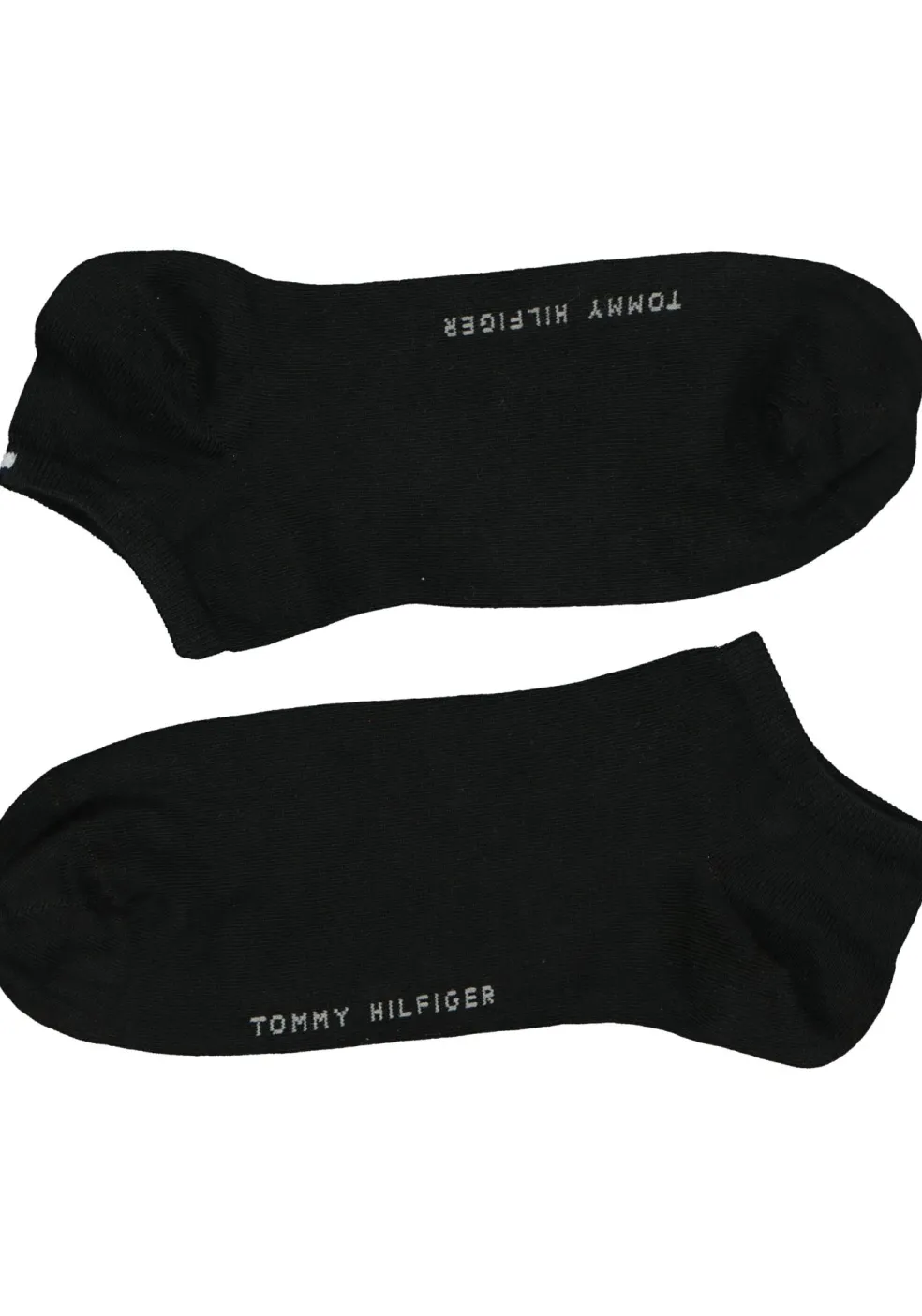 Set van twee paar zwarte Tommy Hilfiger dames sneakersokken van een gekamde katoenmix met stretch. Kort model tot onder de enkel, met een comfortabele enkele naad op de teen die met de hand is afgewerkt voor het naadloze gevoel en een klein ribgebreid boordje. Met de subtiel geborduurde Tommy Hilfiger-vlag op de achterkant. Ideale sokken voor in de sneakers in een handige set met twee paar dezelfde sokjes.
