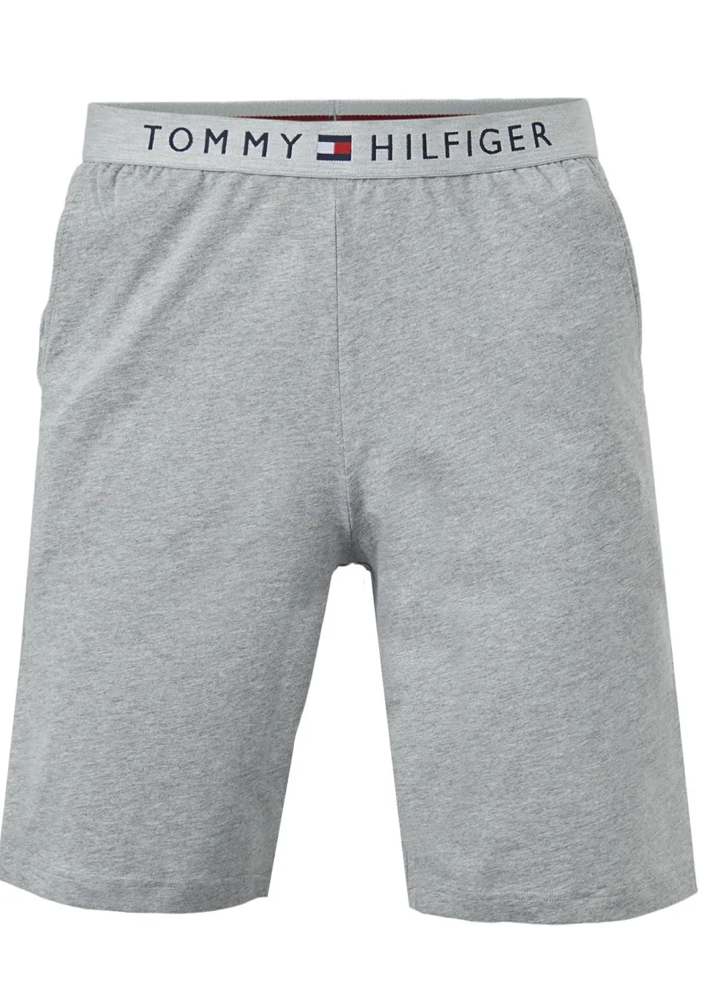 Licht grijze 100% cotton short Icon van het Amerikaanse Tommy Hilfiger. Om heerlijk in huis te dragen of als pyjama broek te gebruiken. Gemaakt van 100% katoen tricot (elastisch), elastische grijze tailleband met in het midden Tommy Hilfiger en het rood-witte logo, rechtvallende korte pijpen zonder boord en twee zakken in de zijnaad. Het materiaal heeft de dikte van een gewoon katoenen t-shirt en is dus heerlijk om te dragen op warme dagen.