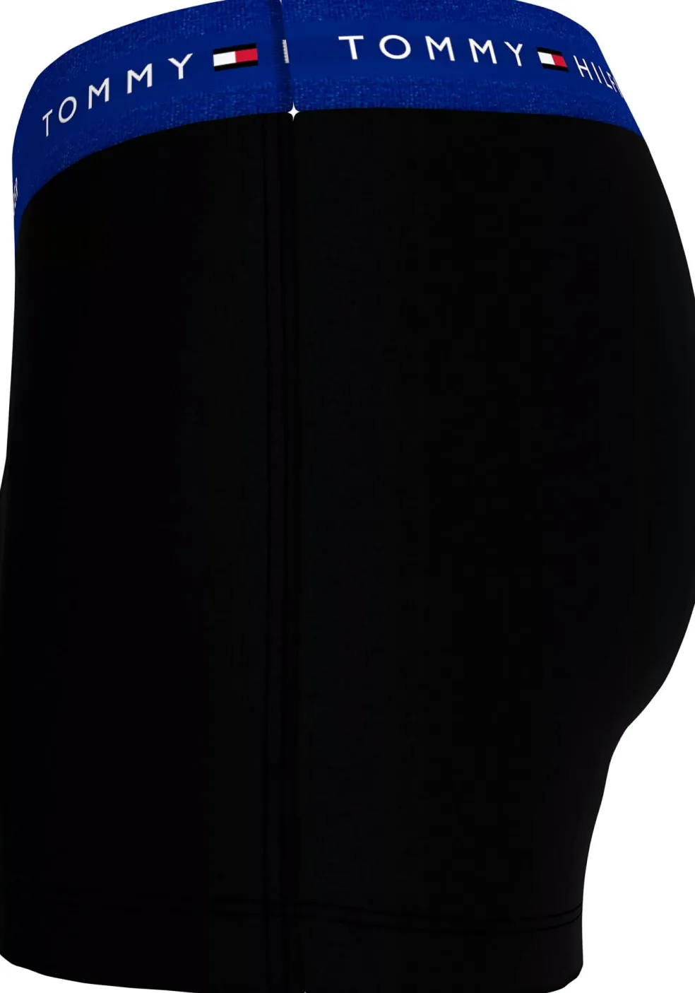Set van 3 Tommy Hilfiger trunks, een handige toevoeging aan de ondergoed collectie van iedere man. Heren boxers in een model met pijpjes in een normale lengte en een normale hoogte taille, afgewerkt met een brede logo tailleband. De tricot stof is een standaard combinatie van katoen en een fijne dosis stretch. Boxer met een normale taille, normale pijpen en een Tommy Hilfiger signature elastische tailleband.