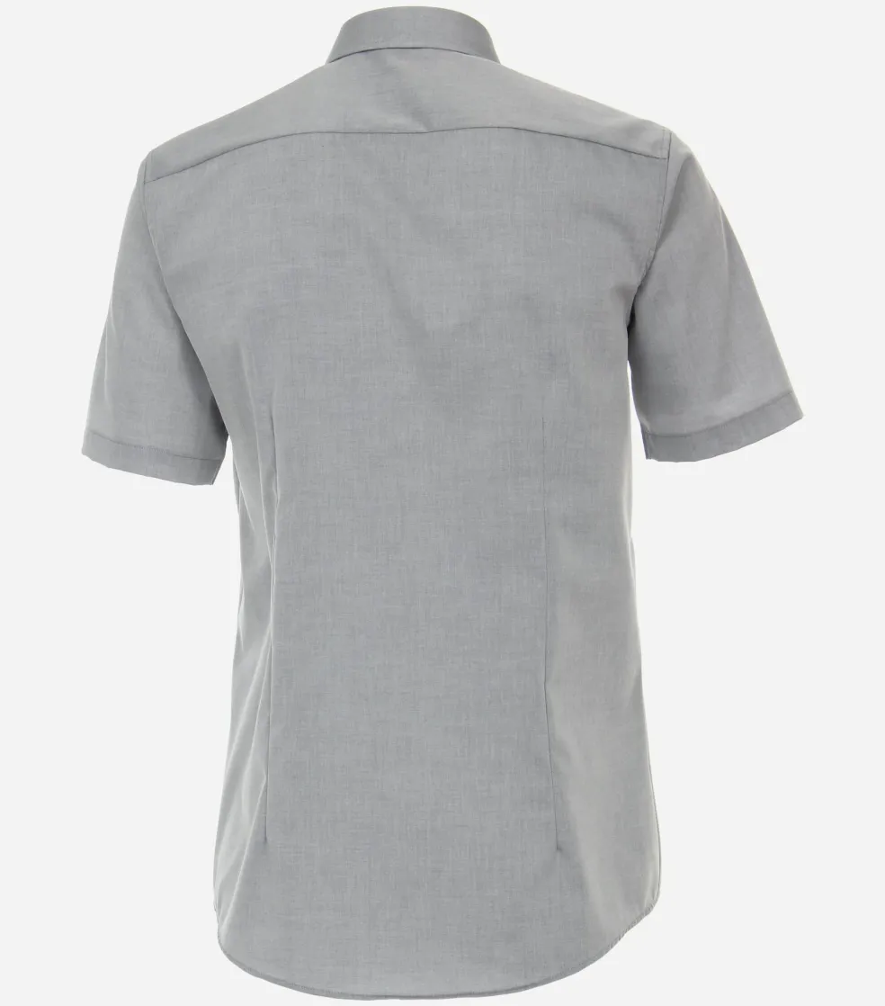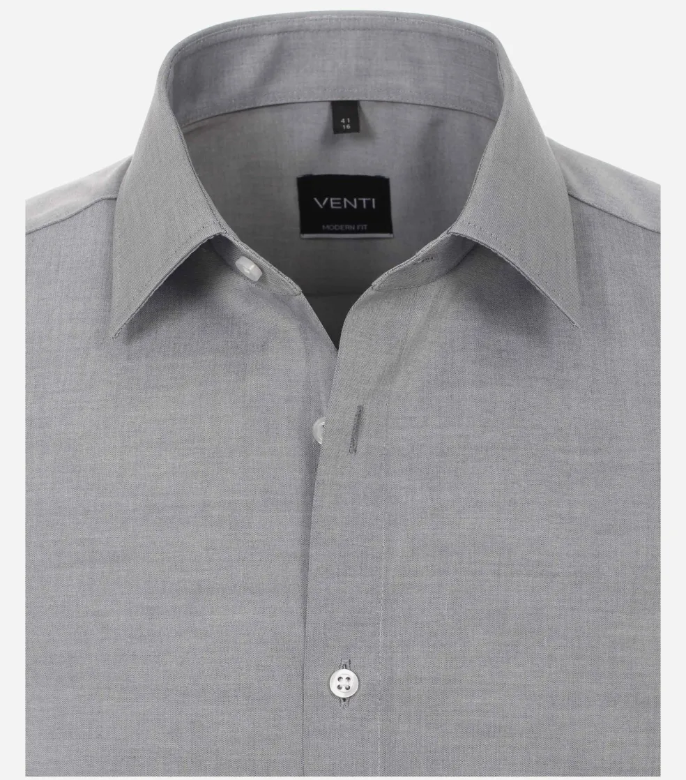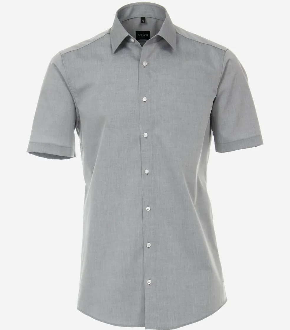 Modieus getailleerd overhemd in een fijne kwaliteit. Dit heren overhemd van VENTI heeft korte mouwen. Heerlijk voor de warme dagen, maar ook fijn voor de mannen die gewoon graag een shirt met korte mouwen dragen. Door de uitvoering in een poplin weving is de stof glad, zacht, soepel en egaal. Dit is een van de meest gebruikte wevingen voor overhemden. Het shirt heeft een normale Kent kraag waarbij de boordpunten recht naar beneden wijzen en niet ver uit elkaar staan. Deze kraagvorm is ideaal om zo te dragen maar ook perfect te combineren met een stropdas. De easy iron kwaliteit van de stof zorgt ervoor dat het slechts licht gestreken hoeft te worden voor een prachtig glad resultaat. Voor een moderne uitstraling ontbreekt de borstzak bij dit shirt.
