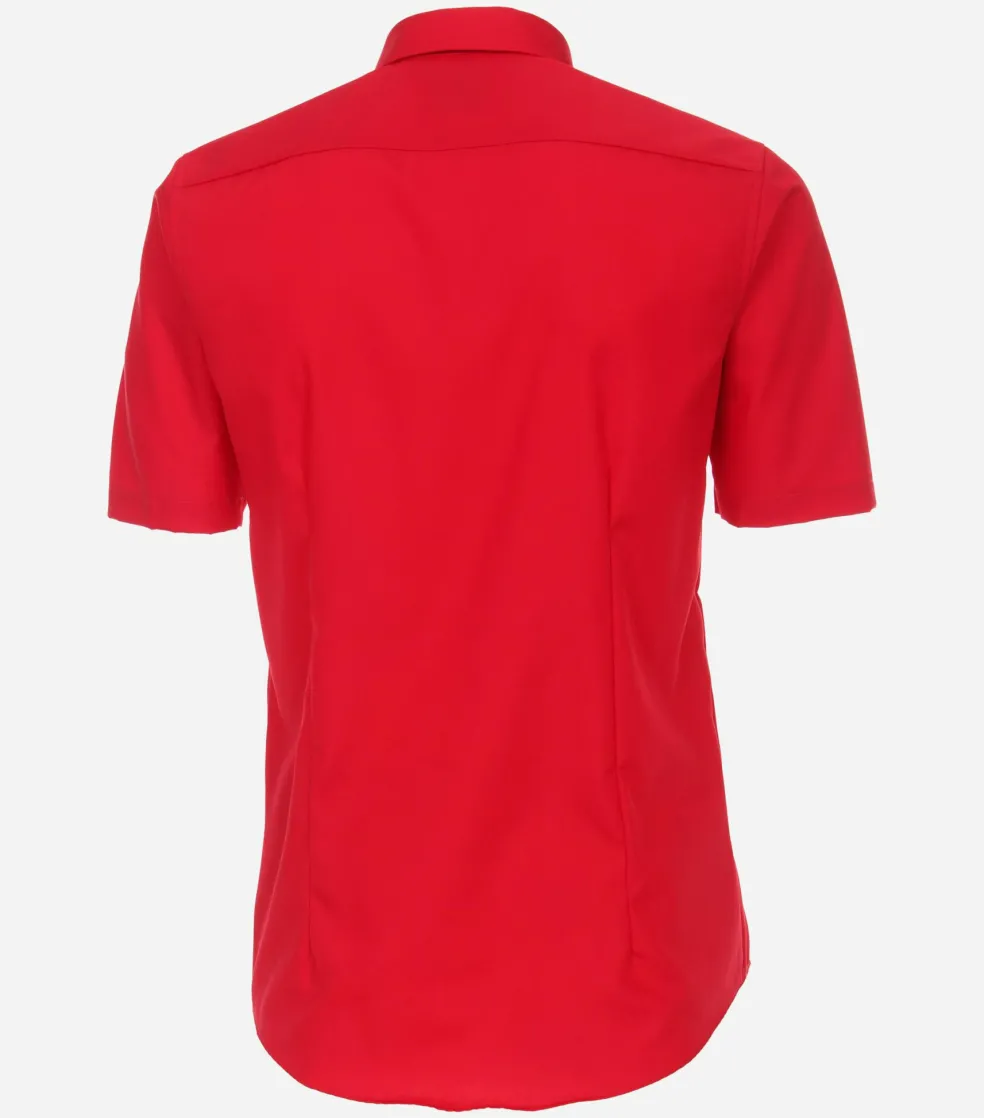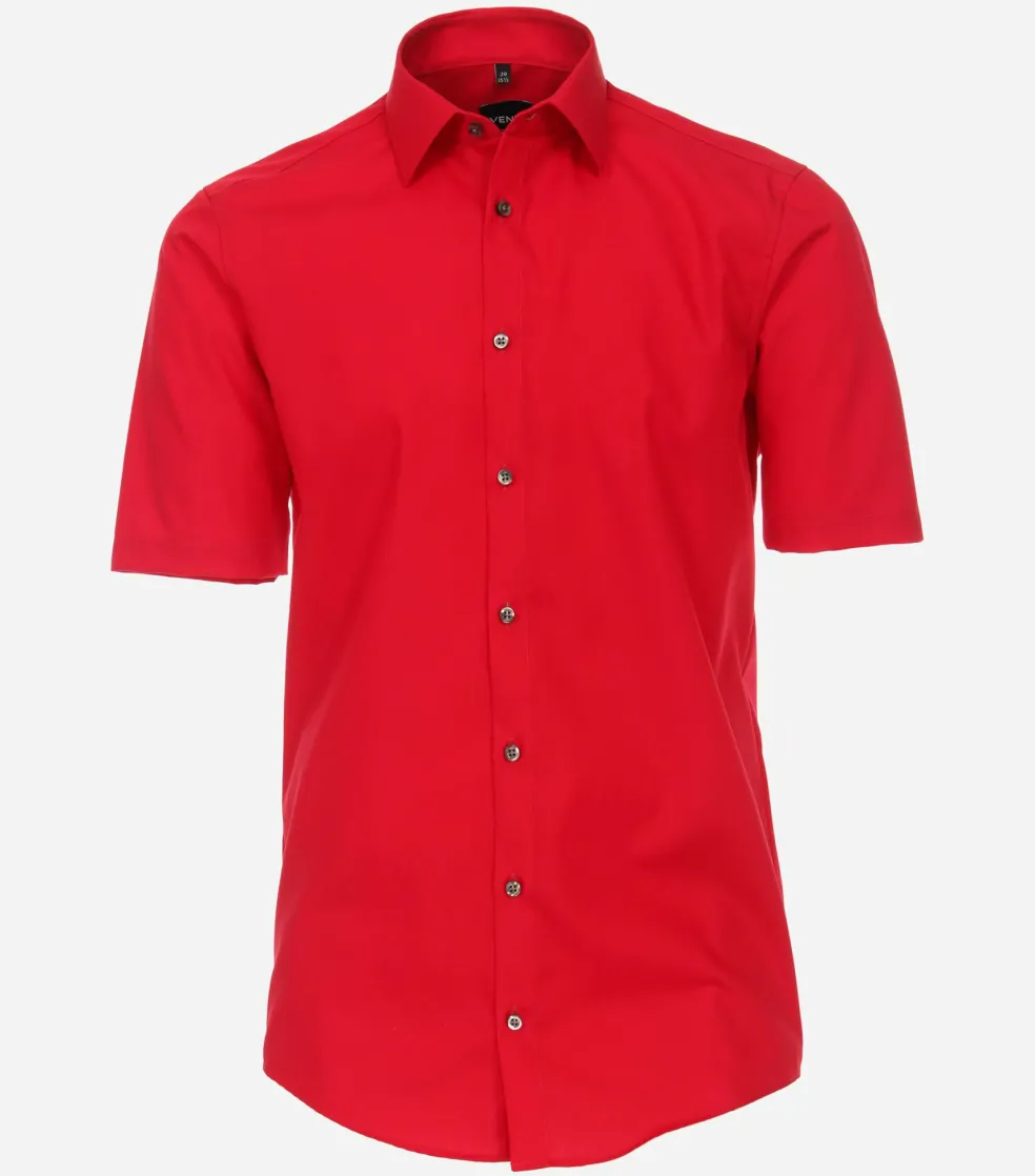 Modieus getailleerd overhemd in een fijne kwaliteit. Dit heren overhemd van VENTI heeft korte mouwen. Heerlijk voor de warme dagen, maar ook fijn voor de mannen die gewoon graag een shirt met korte mouwen dragen. Door de uitvoering in een poplin weving is de stof glad, zacht, soepel en egaal. Dit is een van de meest gebruikte wevingen voor overhemden. Het shirt heeft een normale Kent kraag waarbij de boordpunten recht naar beneden wijzen en niet ver uit elkaar staan. Deze kraagvorm is ideaal om zo te dragen maar ook perfect te combineren met een stropdas. De easy iron kwaliteit van de stof zorgt ervoor dat het slechts licht gestreken hoeft te worden voor een prachtig glad resultaat. Voor een moderne uitstraling ontbreekt de borstzak bij dit shirt.