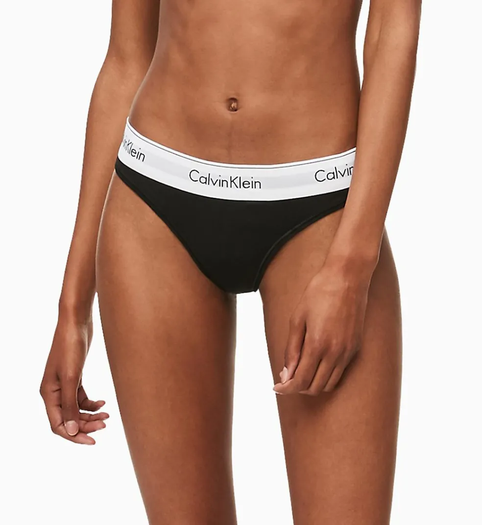Calvin Klein dames Modern Cotton string. Sportieve dames string met een extra brede witte tailleband met ingeweven Calvin Klein merklogo in het zwart. Deze string heeft een fijn zittende pasvorm en is gemaakt van een heerlijk zacht katoenmengsel met stretch. Ontworpen voor comfort met een moderne uitstraling.