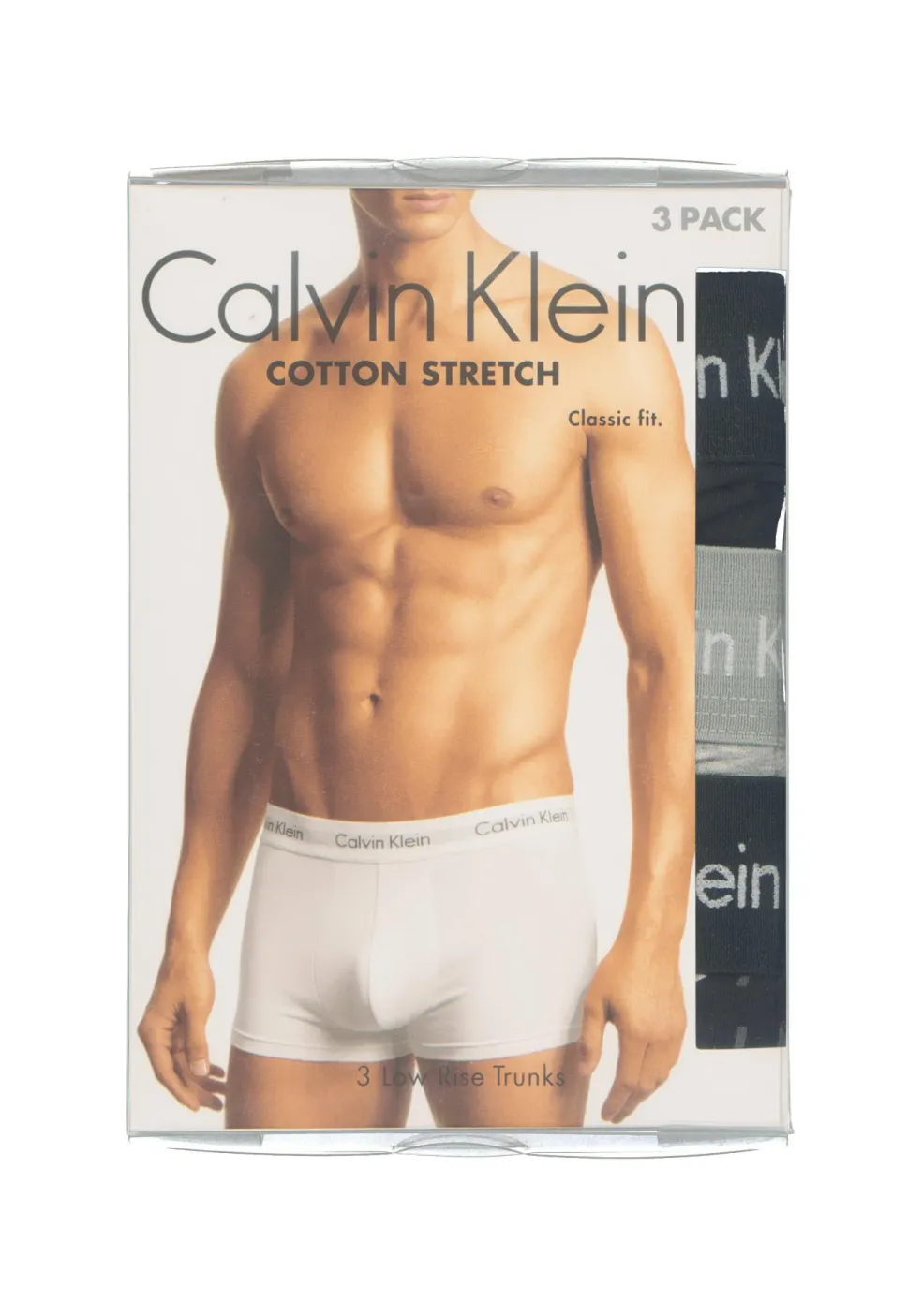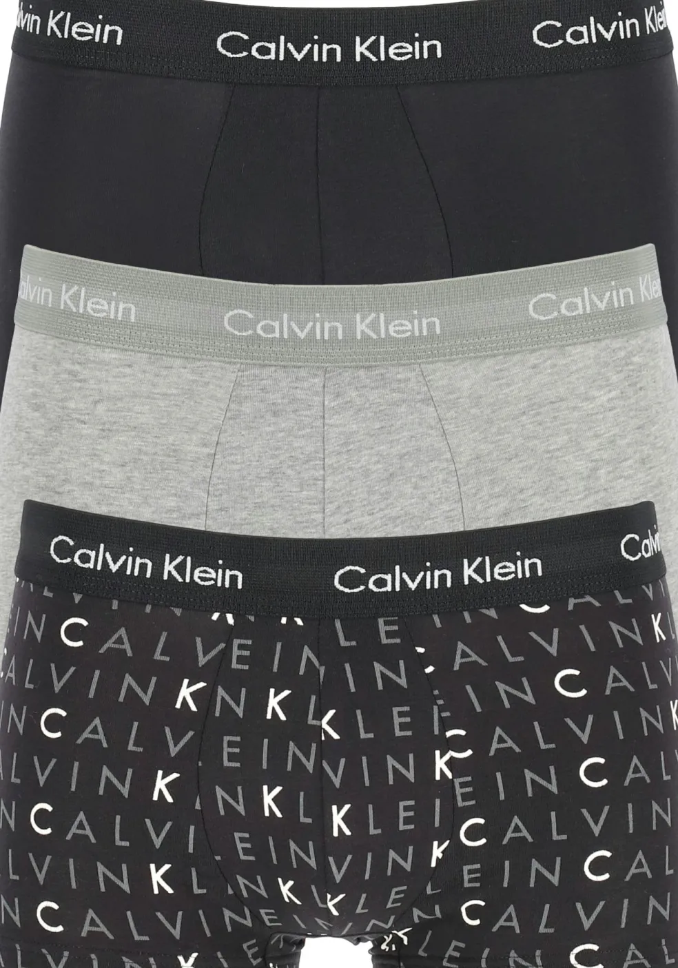 Mooie set van drie Calvin Klein Low Rise Trunks in de kleuren zwart, grijs en zwart met witte logoprint. Deze lage boxers van Calvin Klein hebben korte pijpen en een comfortabele zachte stretch. Nauwsluitend model met een brede elastische tailleband van 3,8 cm) in de kleur van de boxer met daarop ingeweven het toonaangevende merklogo “Calvin Klein”. In de verpakking zitten drie boxers.