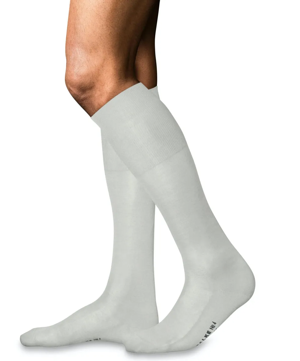 FALKE heren kniekousen van fijne Chinese moerbeizijde. Zuivere, stijlvolle zijde voor een luxe draaggevoel met een unieke glans die we bij geen enkel ander natuurproduct zien. De luxe kniekousen zijn met de hand afgehecht en gevormd. U heeft optimale ondersteuning door de versterkte belastingszones en de perfecte FALKE-pasvorm. Zijde schenkt onze huid een ultiem gevoel van luxe. Al eeuwenlang resulteren de zachte touch en de unieke glans van deze vezels in een bijzondere en waardige elegante look van kledingstukken. Na de oogst worden de glanzende vezels van de Chinese moerbeizijde in Zwitserland veredeld tot een echt luxegaren. Zijde is meer dan gewoon een stof op de huid, FALKE No. 4 Finest Silk is een feest voor de zintuigen! De heren kniekous komt tot net onder de knie en blijft goed op zijn plaats zitten door zijn extra hoge boord, maar knelt niet.