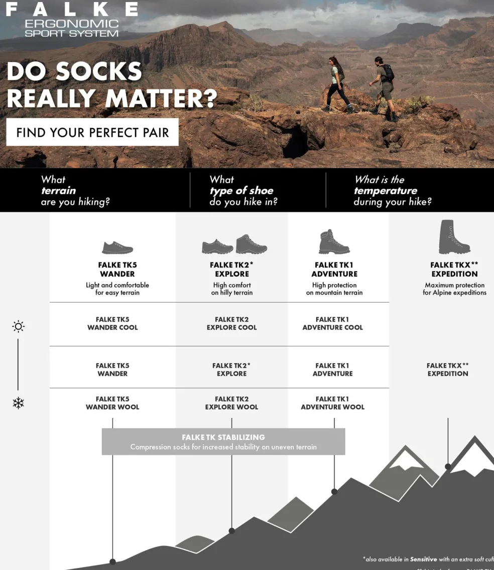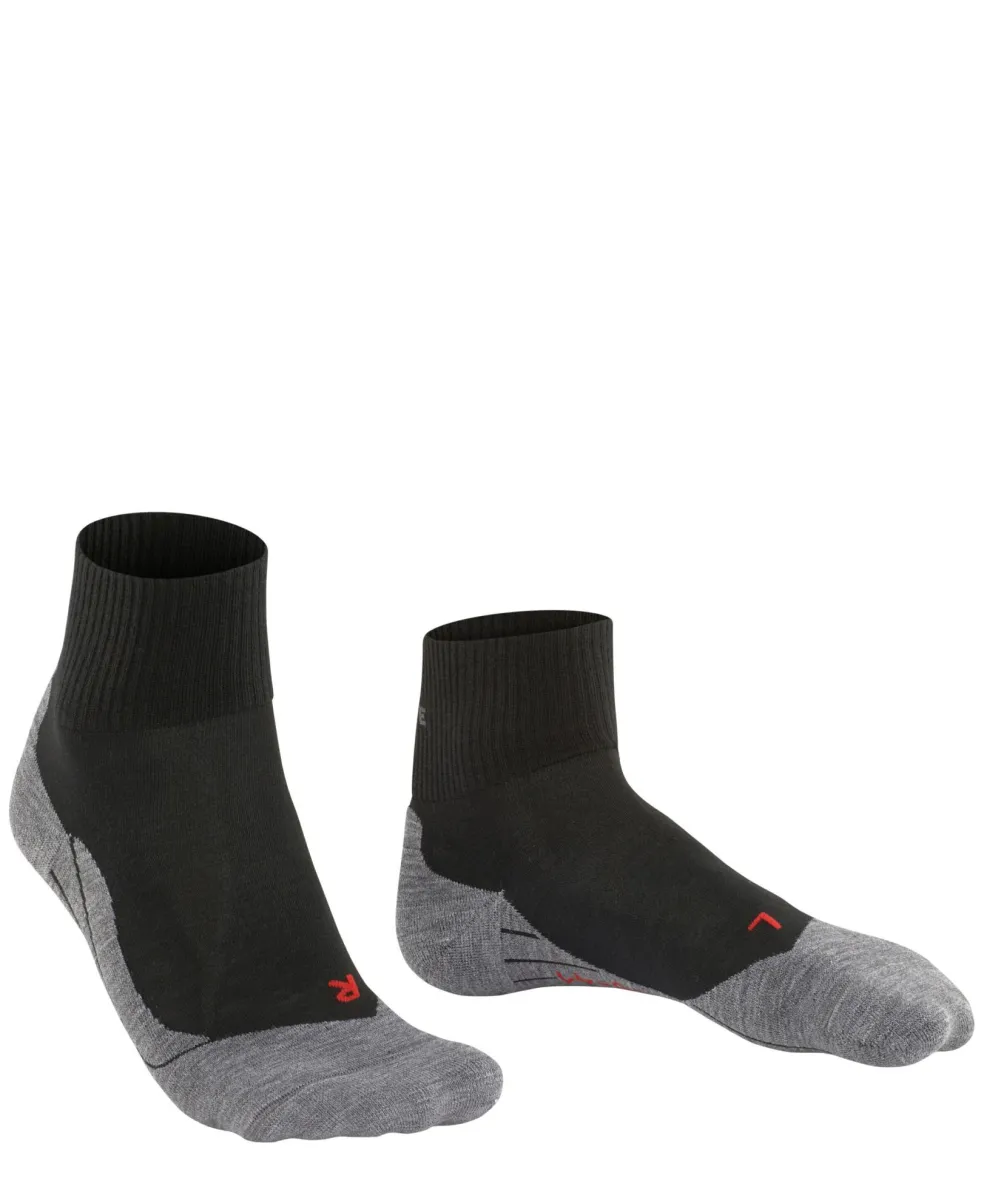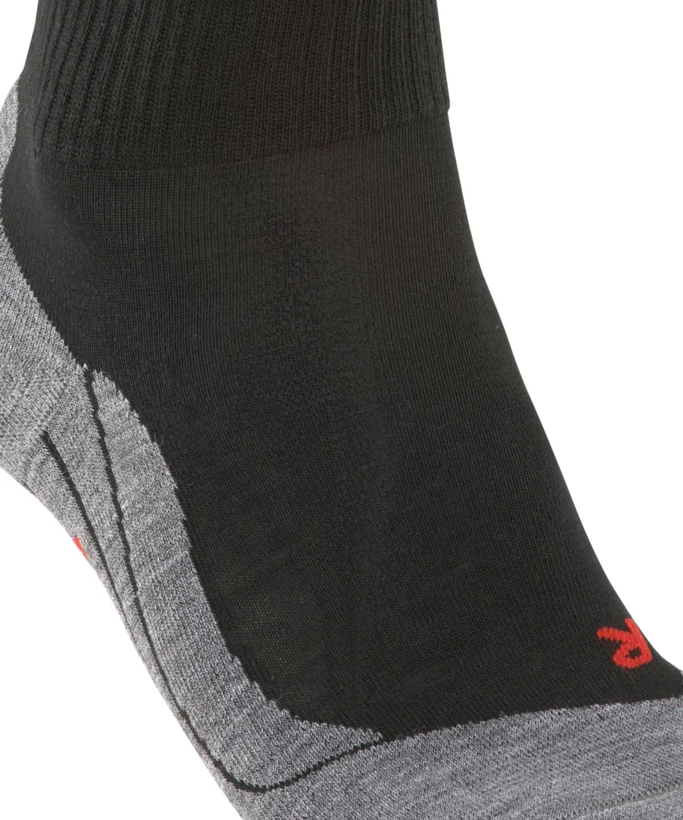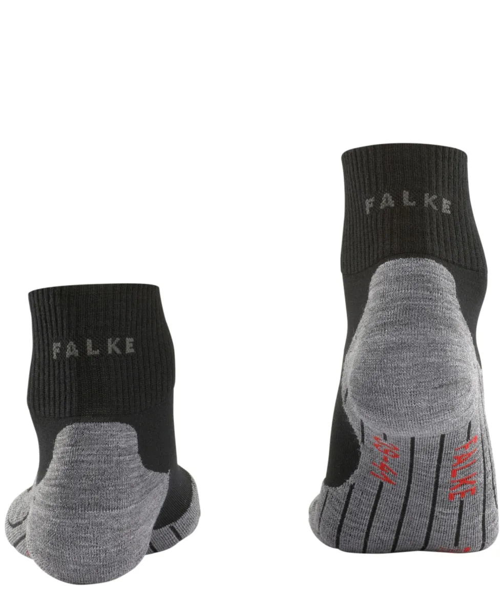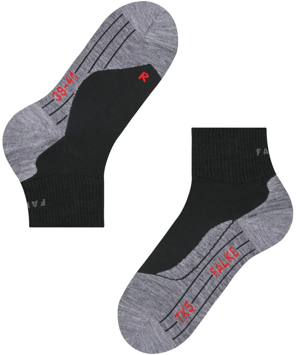 FALKE TK5 Short heren wandelsokken zijn ideaal voor de sportieve wandelaar die graag en vaak even een rondje wandelt, hoe lang het rondje is hangt van uw eigen conditie en tijd af, aan deze korte wandelsokken zal het niet liggen. Met zijn lichte polstering en zijn mengsel van merinowol biedt de wandelsok TK5 een goed schoencontact en een goede warmte-isolatie. Het snelle vochttransport en de optimale pasvorm garanderen de perfecte temperatuur en veel comfort aan de voet. De lichte vulling zorgt voor aangepaste bescherming en goed contact met de schoen. Altijd een perfecte temperatuur aan de voeten door drielaags constructie van slimme materialen. De FALKE TK5 heeft een optimale pasvorm, voor rechter en linker voet en zo wandel je vrolijk voort op deze fijne sokken.