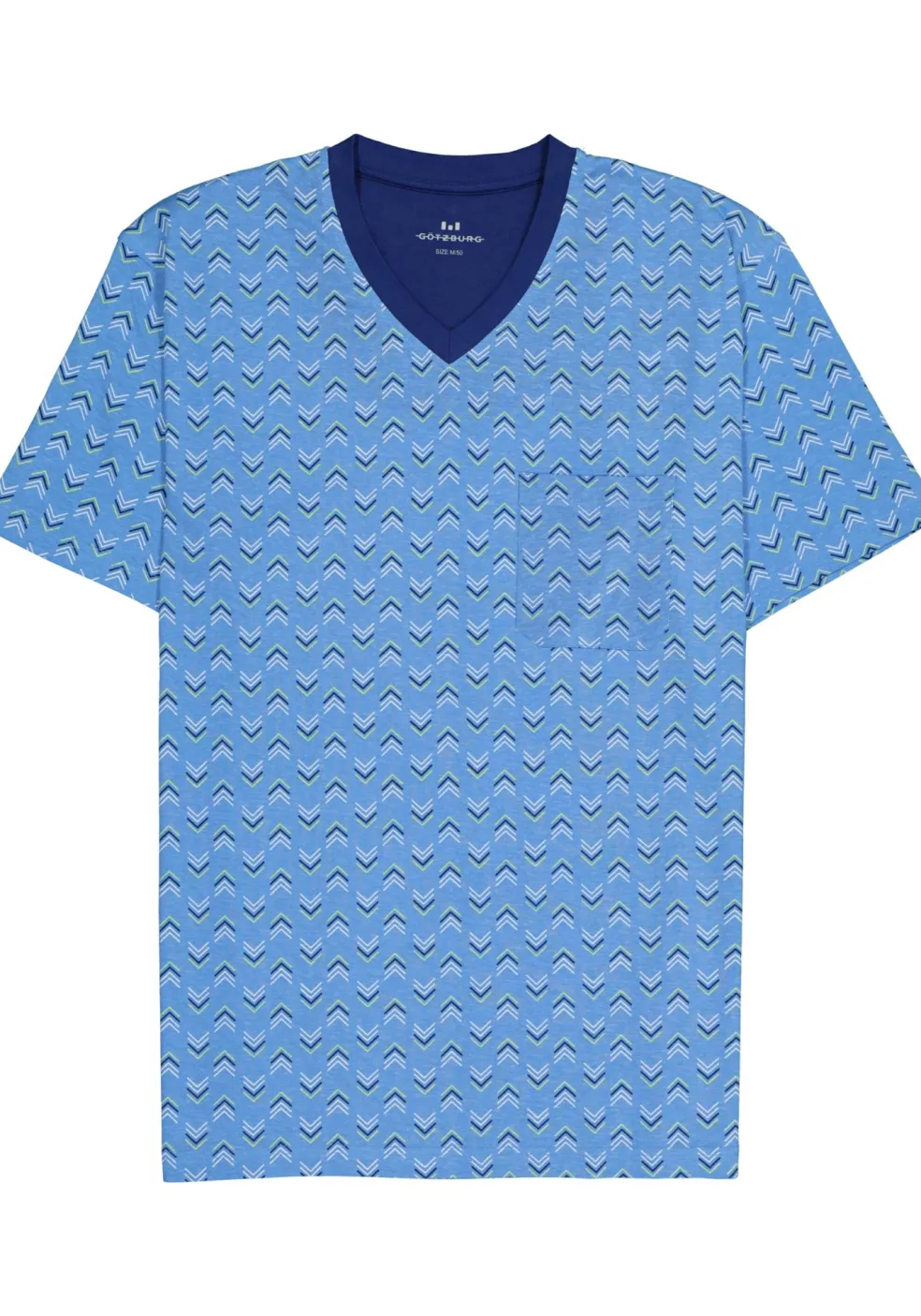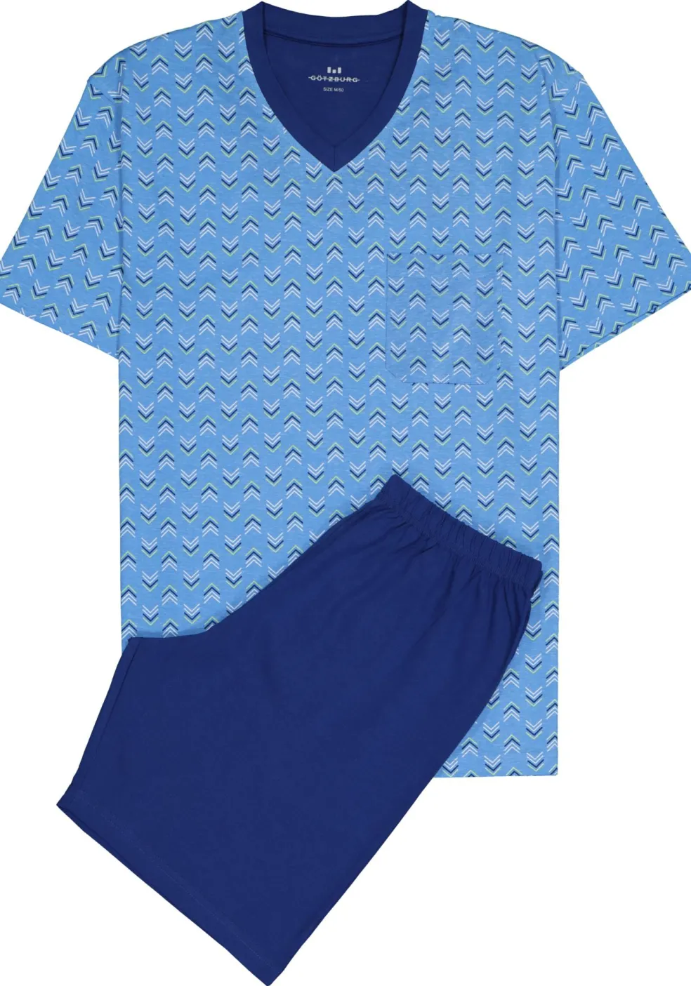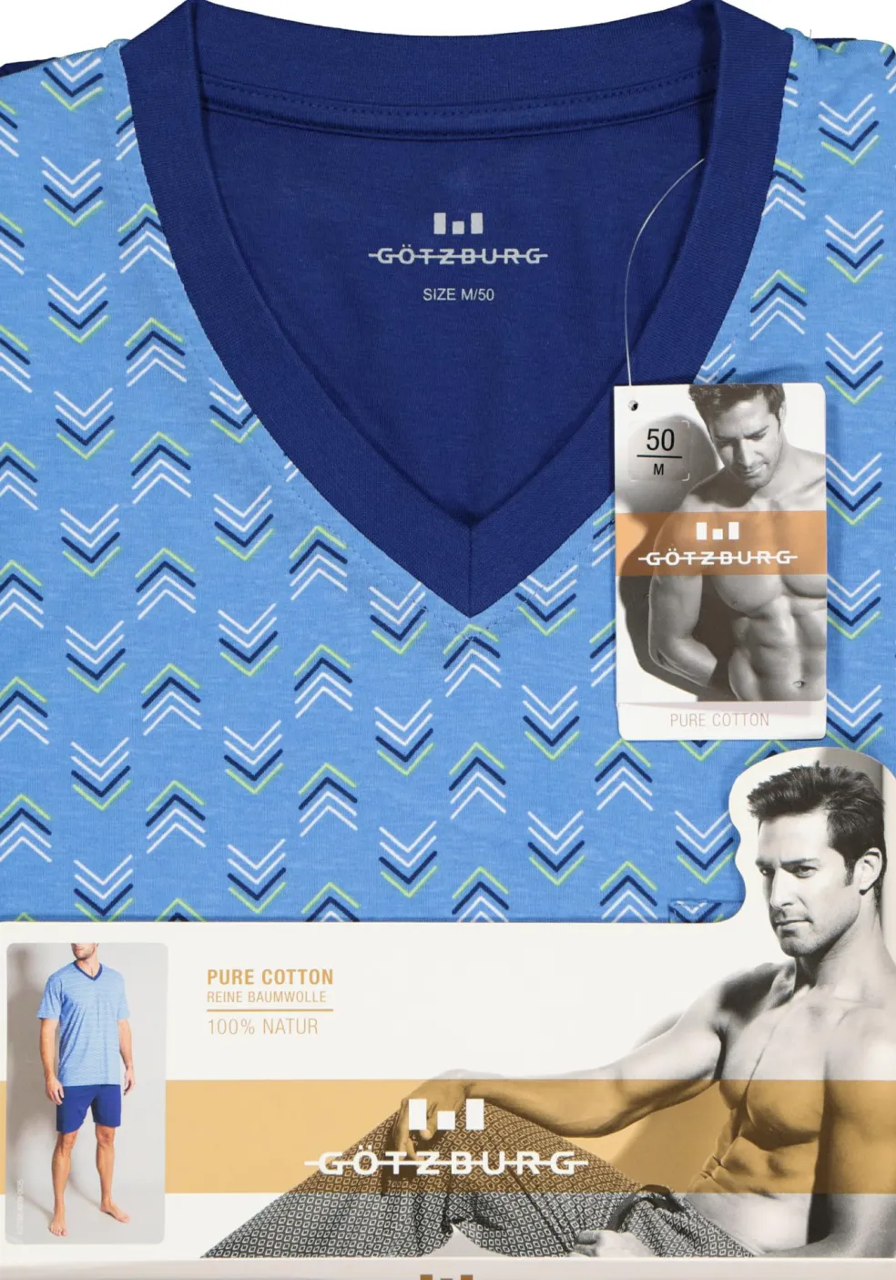 Gotzburg heren shortama V-hals, middenblauw dessin