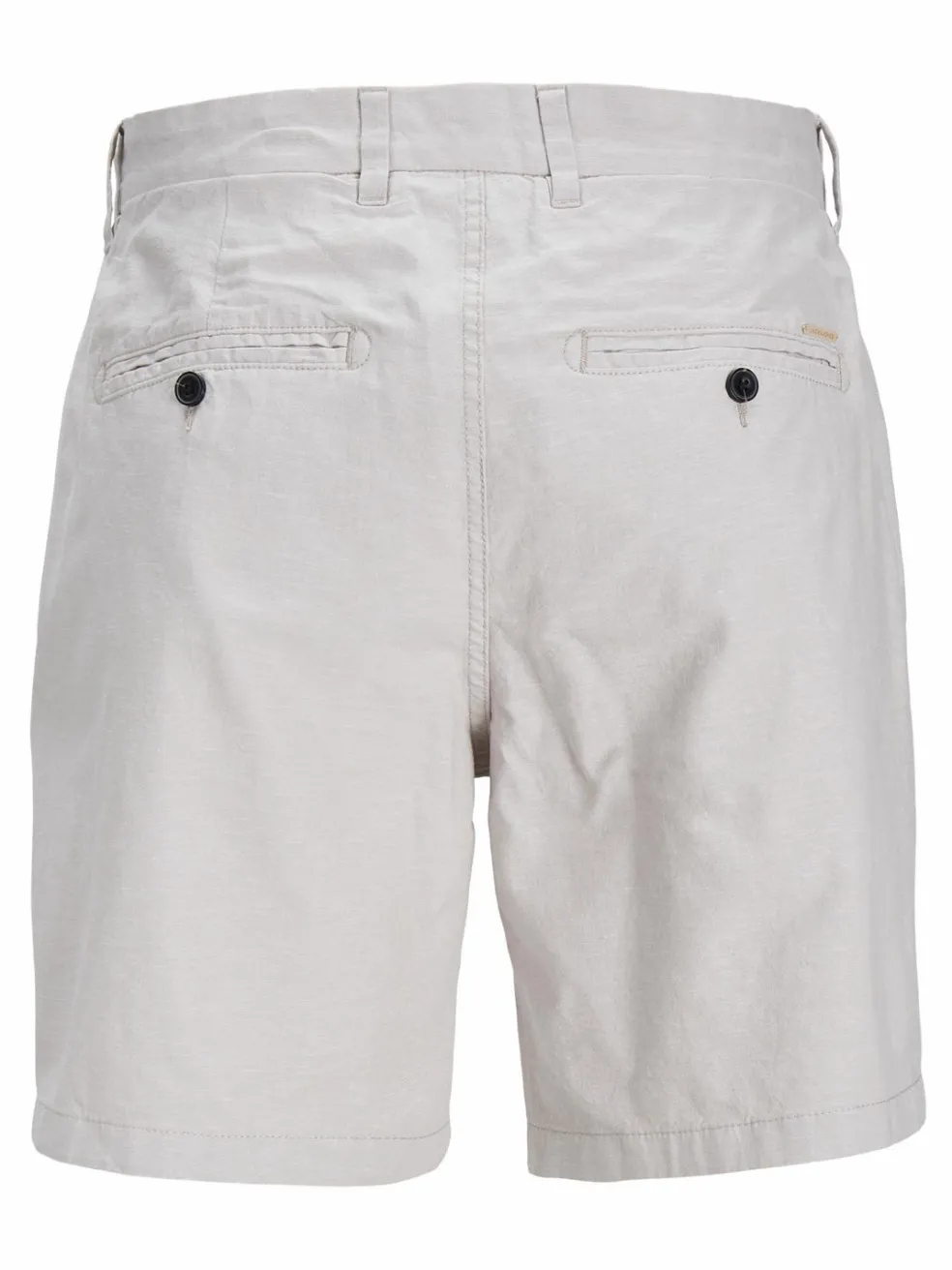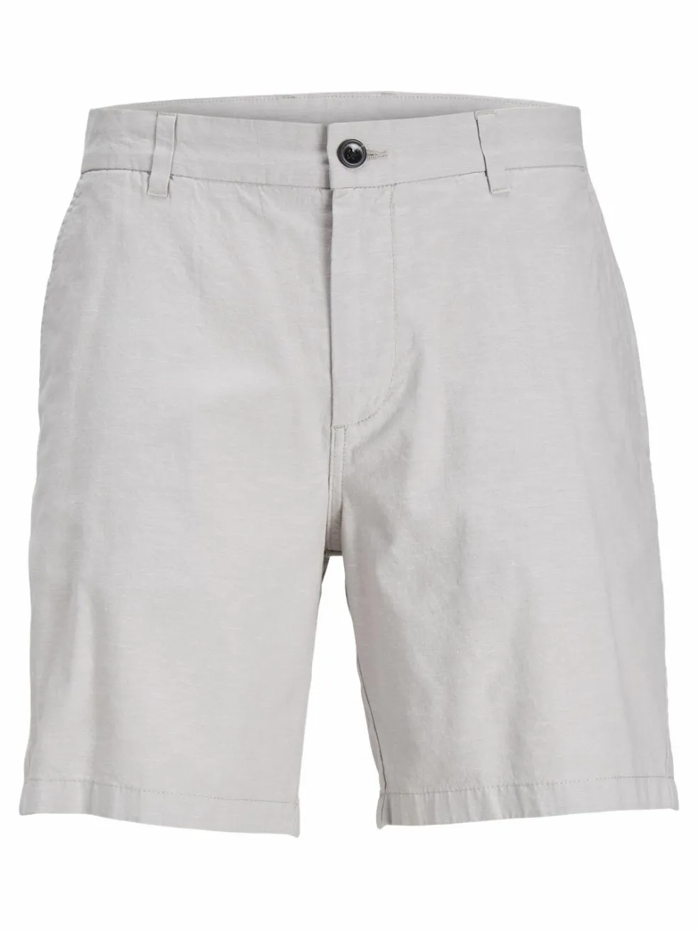 Chino shorts van JACK & JONES in het beige melange. Een korte broek die de ideale metgezel is bij mooi weer. Uitgevoerd in een geweven stof die niet elastsisch is, gemaakt van katoen met linnen mix. Chino shorts met korte pijpen en een ritssluiting met op de tailleband een haak en oog sluiting.