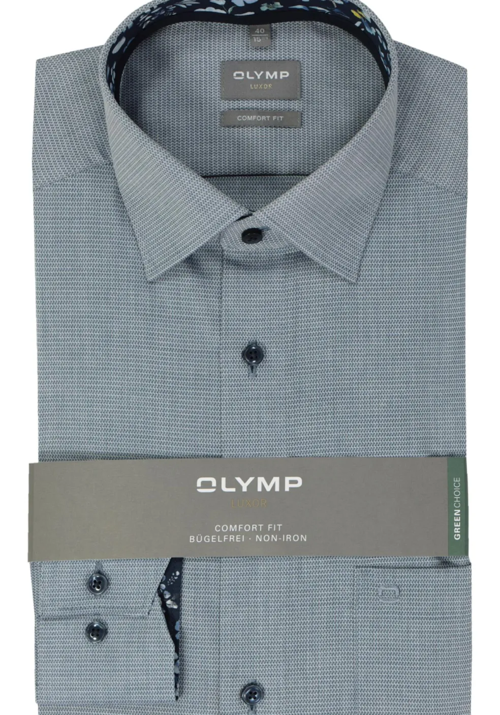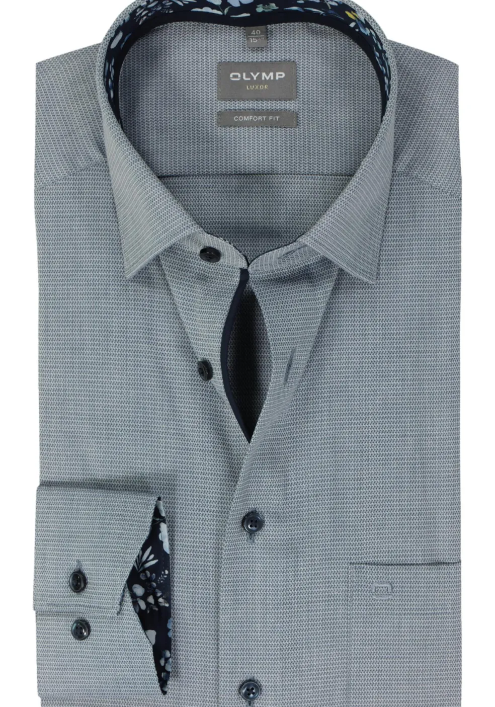 Marine blauw OLYMP overhemd in een ongetailleerde comfort fit pasvorm. Het rechte model is prettig dragen bij een wat gevulder postuur, maar natuurlijk ook voor iedere man die houdt van een lekker ruim vallend shirt. Dit heren overhemd van OLYMP heeft lange mouwen in een standaard mouwlengte. Een heren overhemd van OLYMP met lange mouwen is ideaal voor iedere gelegenheid. De manchetten zijn in twee wijdtes te dragen waardoor ze makkelijk aan te passen zijn naar de eigen voorkeur. Door de uitvoering in een structuurweving zit er wat afwisseling in de stof voor een stijlvol resultaat. Het shirt heeft een normale Kent kraag waarbij de boordpunten recht naar beneden wijzen en niet ver uit elkaar staan. Deze kraagvorm is ideaal om zo te dragen maar ook perfect te combineren met een stropdas. Door de speciale behandeling van de stof is dit hemd strijkvrij. Ideaal omdat er geen kreukels in komen tijdens het dragen en ook na het wassen hoeft het shirt niet gestreken te worden. Eventuele kreukels lopen er door de eigen lichaamswarmte uit. De borstzak op de linkerborst heeft een subtiel geborduurd logo. OLYMP Luxor comfort fit overhemden zijn ideaal voor de man die van een comfortabel overhemd houdt en graag goed gekleed voor de dag komt met deze prachtig uitgewerkte shirts.
