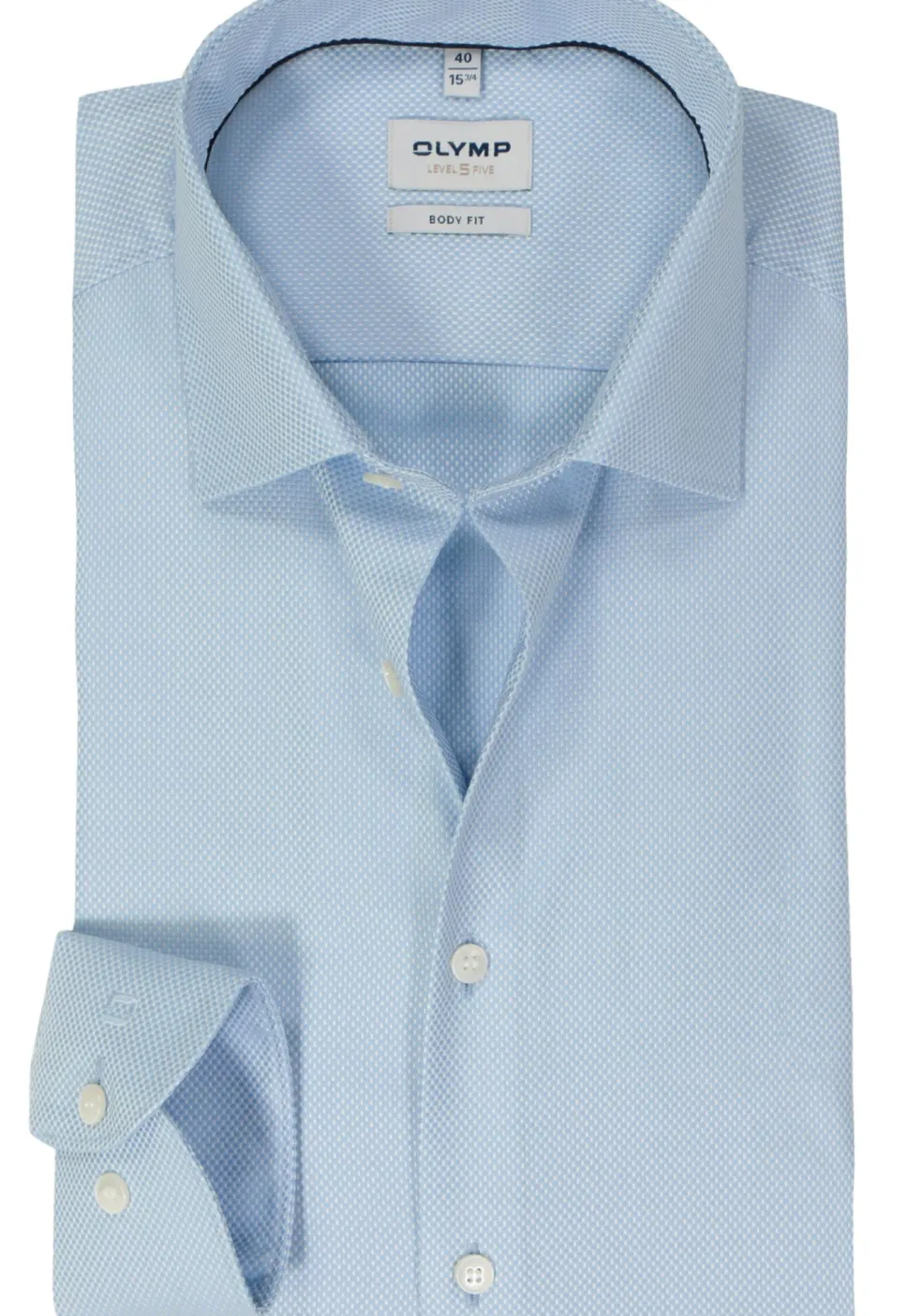 OLYMP Level 5 body fit overhemd, structuur, lichtblauw