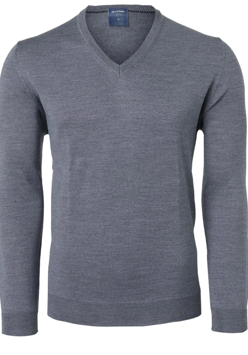 OLYMP heren trui in een lichtgrijze kleur met V-hals van 100% merino wol van de beste kwaliteit. Het modern fit model is niet wijd en ook niet strak en zal bij de meeste mannen goed zitten. De trui is goed ademend, voelt heerlijk aan op de huid en is lekker zacht. Al deze eigenschappen en de perfecte pasvorm van deze OLYMP trui zorgen ervoor dat de trui veel gedragen zal worden. De trui is zo mooi, dat hij zowel zakelijk als privé tot zijn recht komt. De kleur, de perfecte pasvorm, de V-hals, de manchetten en de boord blijven ook na veelvuldig wassen mooi in vorm.