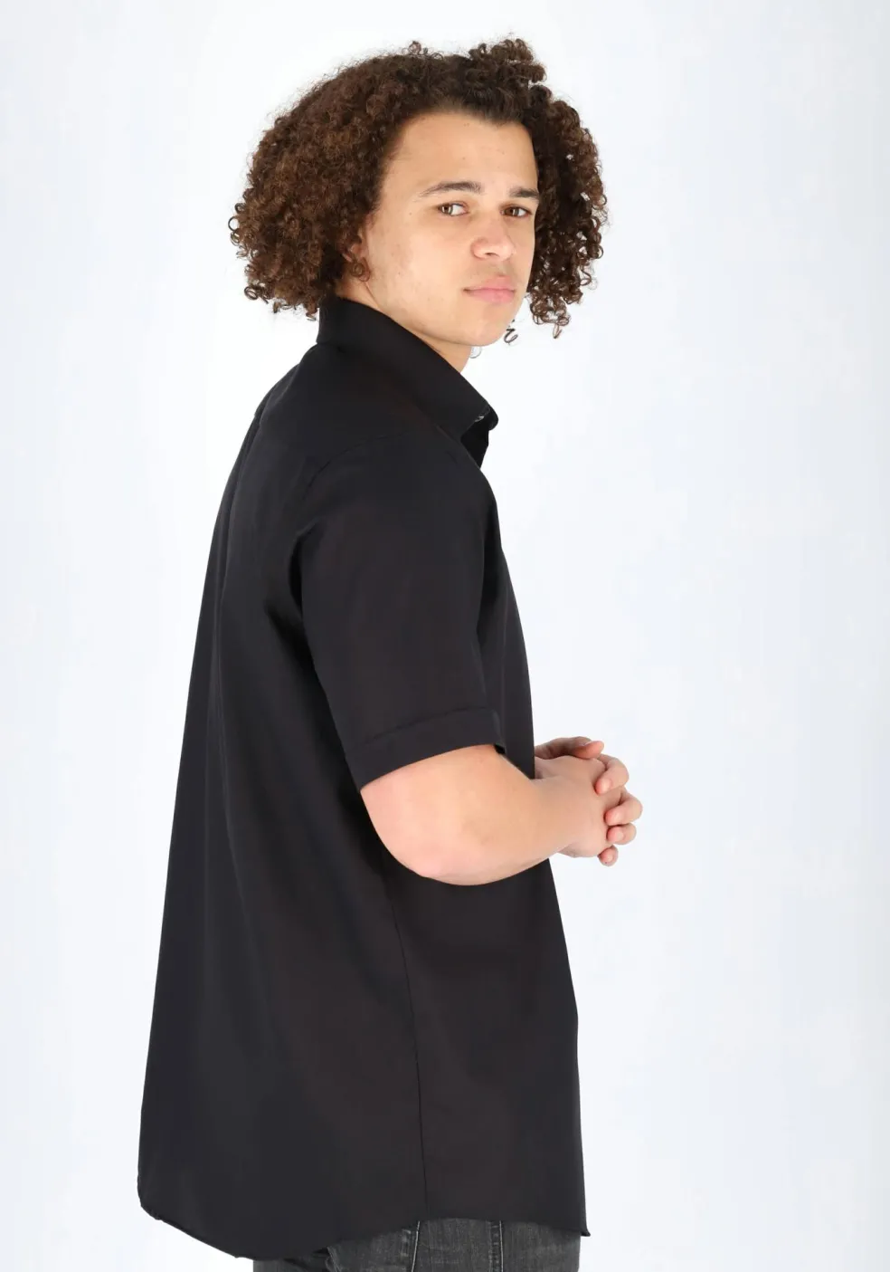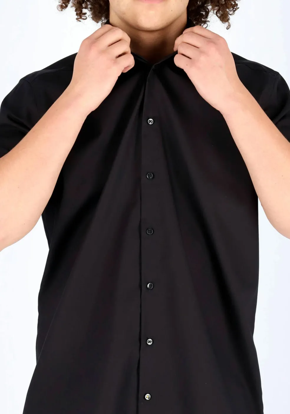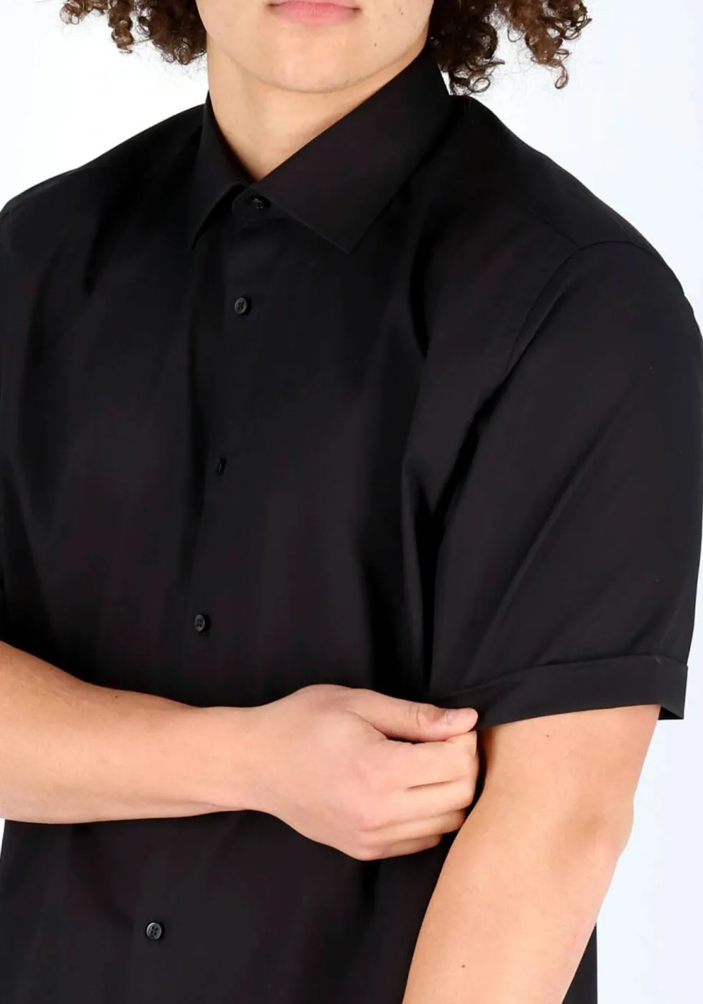 Zwart katoenen overhemd met korte mouwen in een licht getailleerde Redmond modern fit pasvorm. Dit overhemd is gemaakt van 100% strijkvriendelijk katoen in een polplin: heerlijk luchtig en hoeft na het wassen niet gestreken te worden. Trendy overhemd zonder borstzak en met een Kent kraag. Redmond shirts hebben een mooie prijs-kwaliteit verhouding die uitnodigen tot het aanvullen van uw garderobe.
