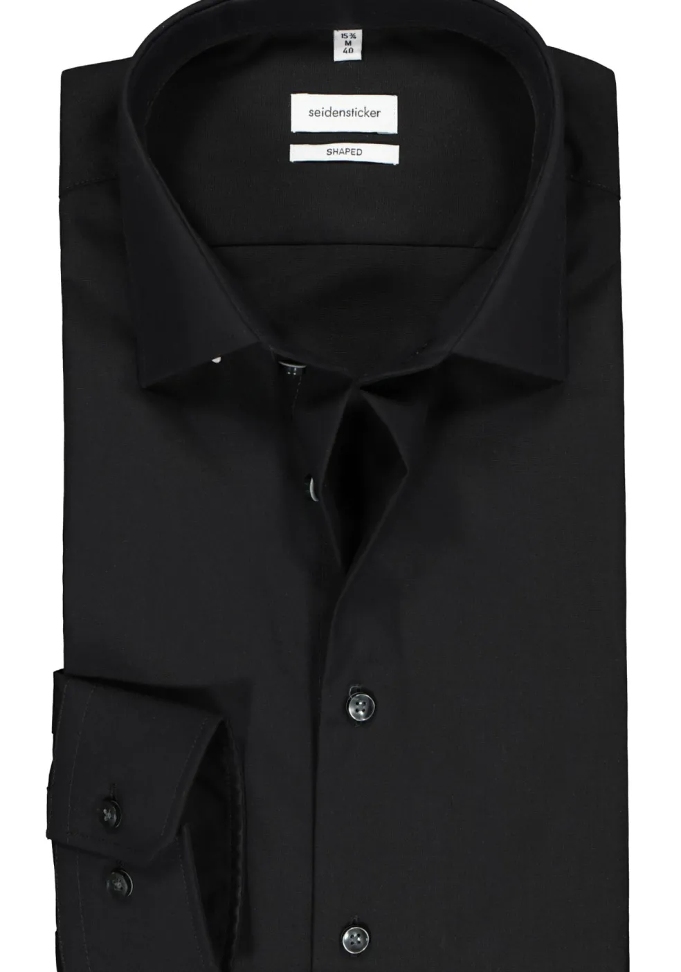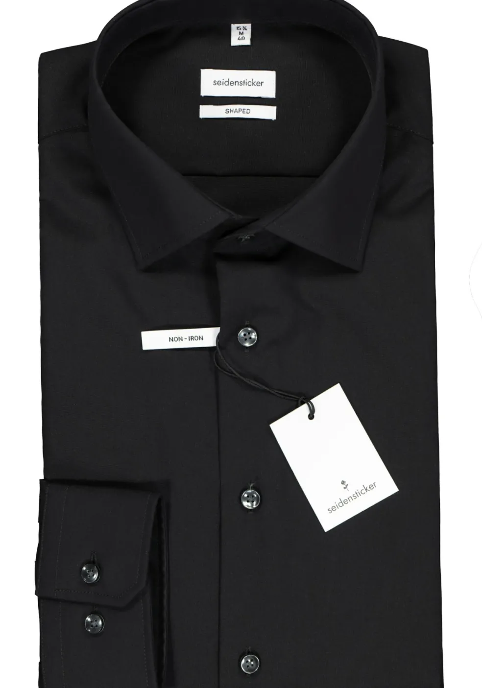 Middel strak getailleerd overhemd van Seidensticker. De shaped fit van dit merk is minder wijd als de meeste modern fit overhemden, maar niet zo strak als de slim fit overhemden met een strakke taille. Dit model heeft lange mouwen, moderne new Kent kraag en afgevlakte manchetten. Het overhemd heeft geen borstzak. Het shirt is gemaakt van 100% strijkvrij katoen in een popeline weving: zacht ademend en huidvriendelijk.