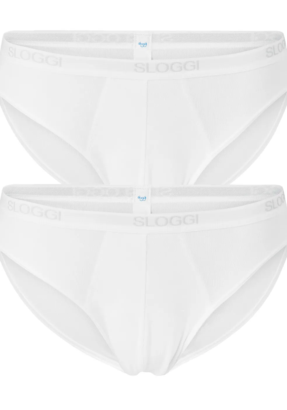 Deze populaire voordeelverpakking van Sloggi bestaat uit 2 dezelfde slips. Het ondergoed voelt comfortabel en sluit mooi aan op de huid door het gebruik van de juiste combinatie katoen en elastaan. De zware kwaliteit katoen zorgt ervoor dat deze niet pilt en ook bijna niet krimpt bij het wassen. De elastische tailleband met logo opdruk heeft een badstof binnenkant. Deze Basis serie van Sloggi is populair door de kwaliteit en tijdloosheid. Deze slips zonder gulp vallen hoog op de heupen, hebben een verstevigd voorpand voor de nodige ondersteuning en het model heeft smalle zijkanten.