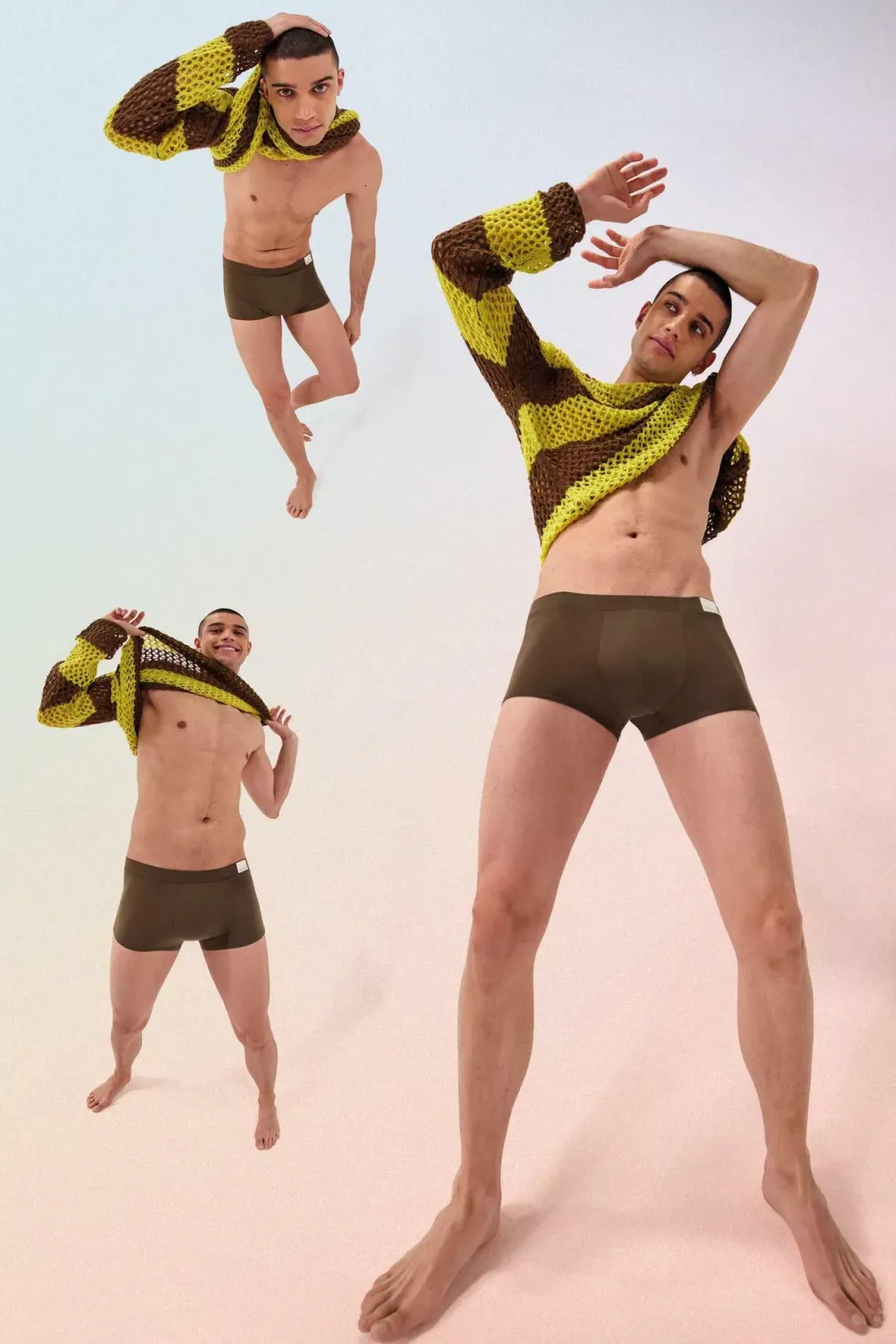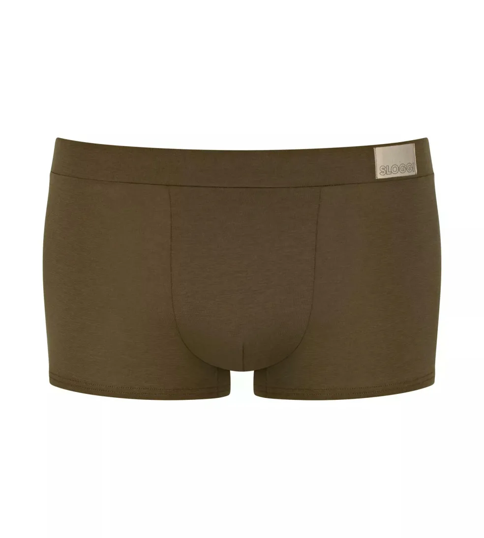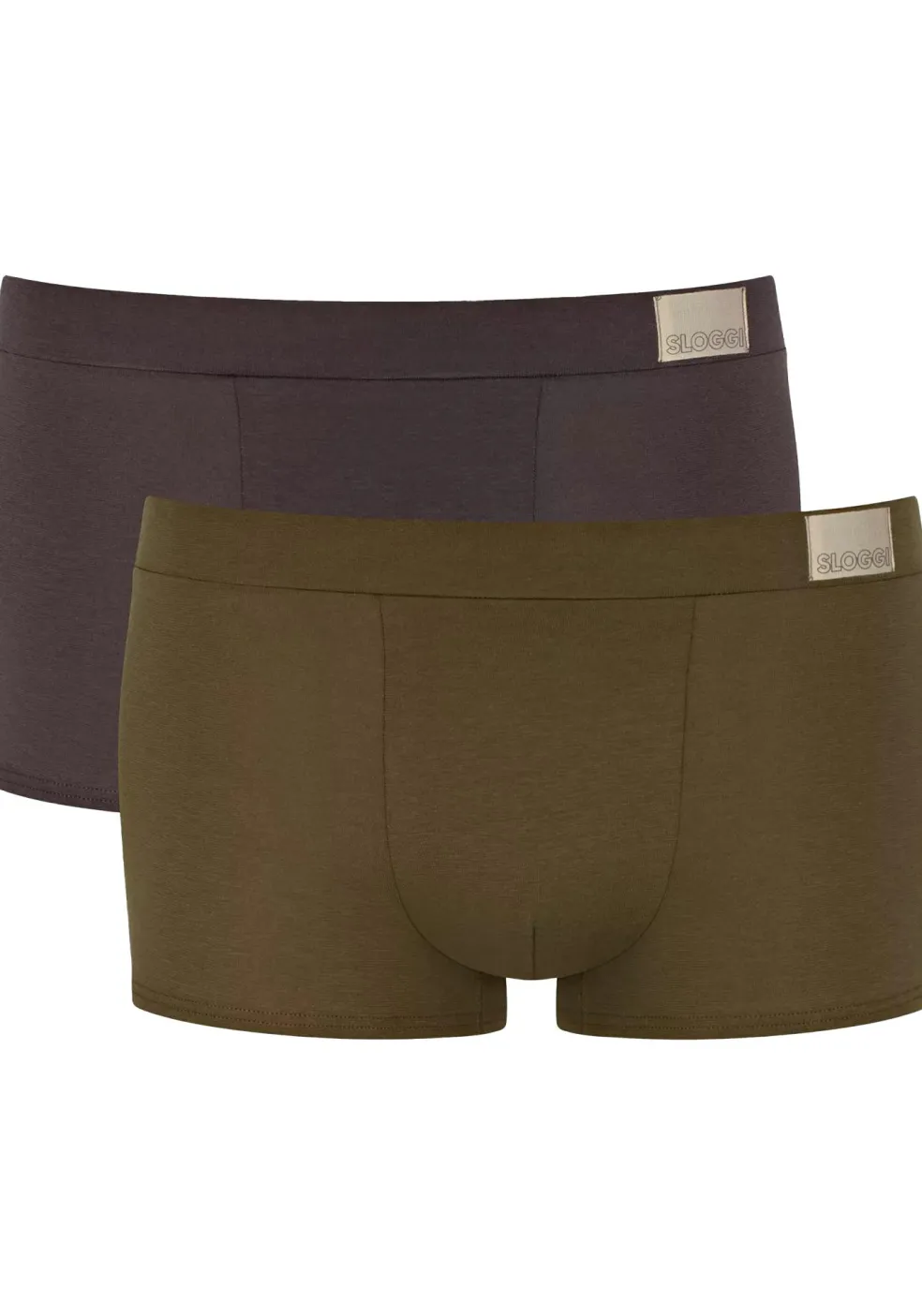 Heren boxershort korte pijp in het bruin en olijfgroen uit de serie GO van sloggi. Extra comfort dankzij de platte naden en zachte randen. Gemaakt van zachte, huidvriendelijke jersey met een bijzonder hoog katoengehalte en het LYCRA® FREEF!T X-MOVE-materiaal past zich dankzij het hoge stretchgehalte optimaal aan, is bijzonder licht en voelt heerlijk aan. De dubbele stof in het kruis zorgt voor extra ondersteuning. Afgewerkt met het sloggi logo op de brede tailleband.