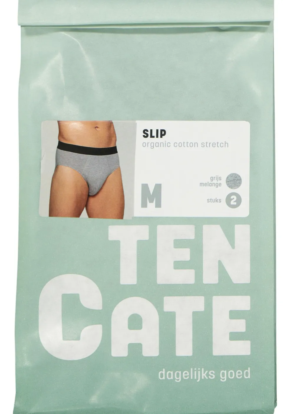 Set van twee ten Cate sportslips voor heren uit de Basics serie met basis ondergoed voor mannen. De slips zijn gemaakt van organisch katoen met stretch voor een optimaal draagcomfort. Deze sportieve slips hebben een aansluitende pasvorm en een brede elastische tailleband en een geprint waslabel om irritatie te voorkomen. In de verpakking zitten twee slips zonder gulp. Deze heren onderbroeken zijn te bestellen in verschillende kleuren.
