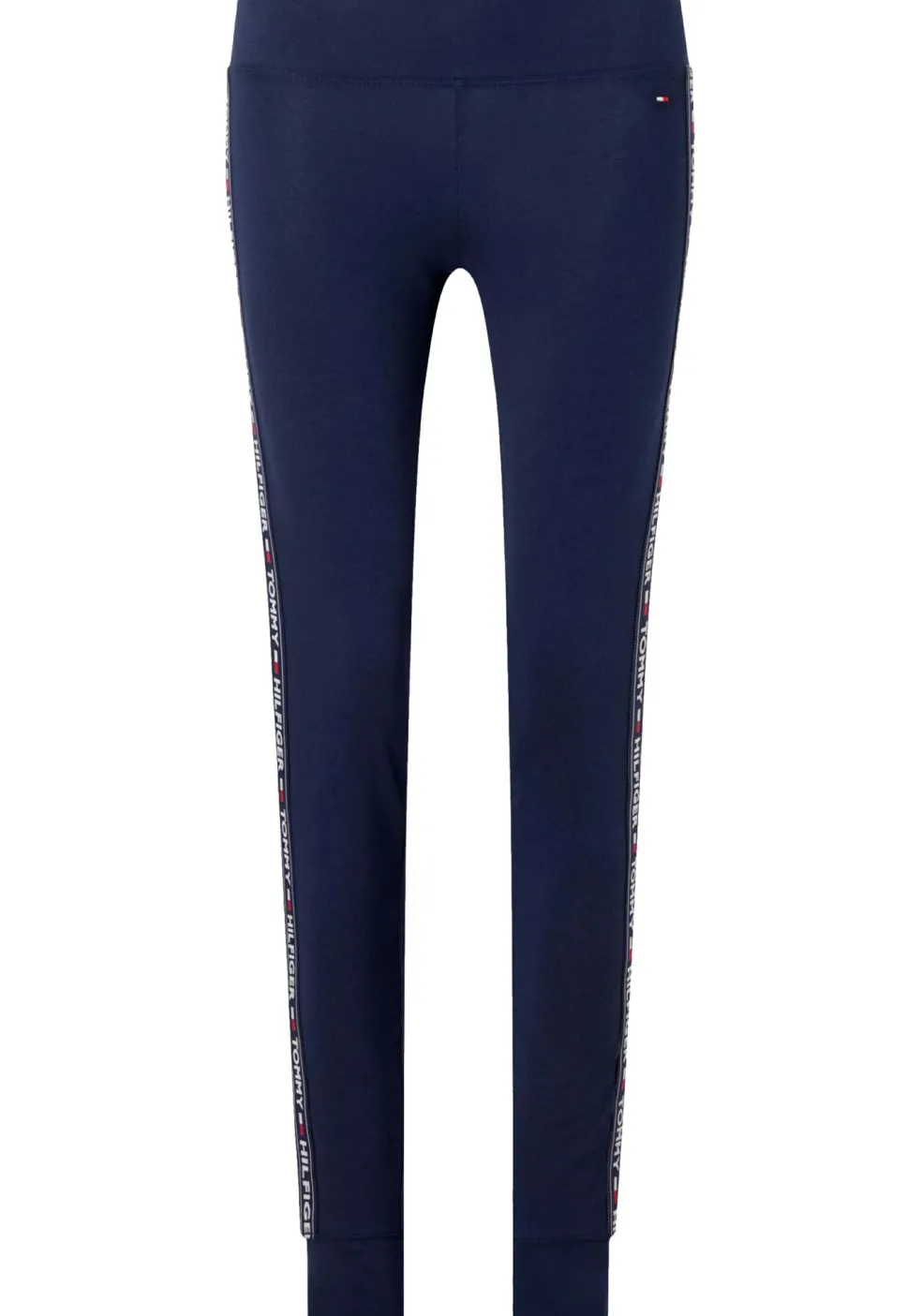 Donkerblauwe dames legging uit de Tommy Hilfiger Authentic serie. Deze comfortabele leggings met een brede tailleband en Tommy Hilfiger-logotape langs beide zijkanten zijn er speciaal voor die ultiem luie momenten. De legging met een medium rise taille is gemaakt van een zachte stretch katoenmix en is afgewerkt met Tommy Hilfiger-logotape op de pijpen en een elastische tailleband. Heerlijke legging voor in huis, tijdens het sporten of in de vrije tijd en perfect te combineren met het vest uit dezelfde lijn.