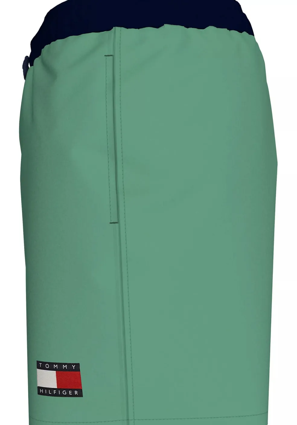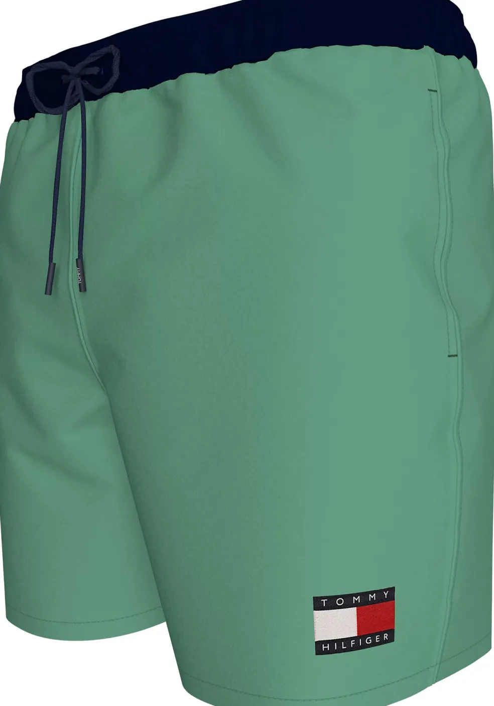 Modern heren zwemshort van Tommy Hilfiger met een medium lengte tot halverwege het bovenbeen. De zwembroek heeft een mesh binnenbroek en zakken. De zwembroek is afgewerkt met het Tommy Hilfiger logo.