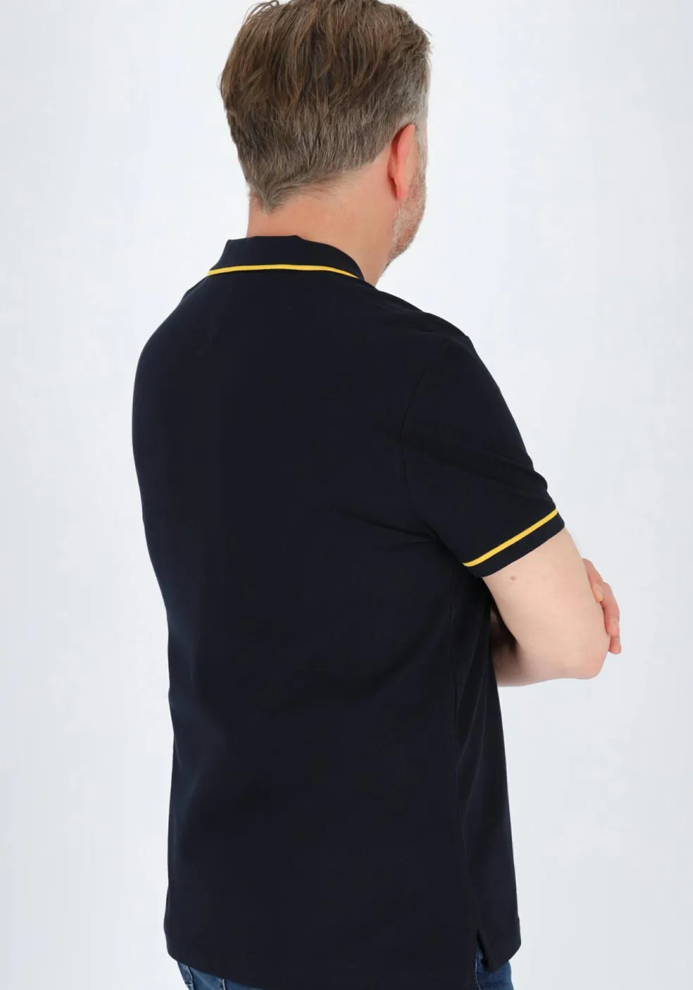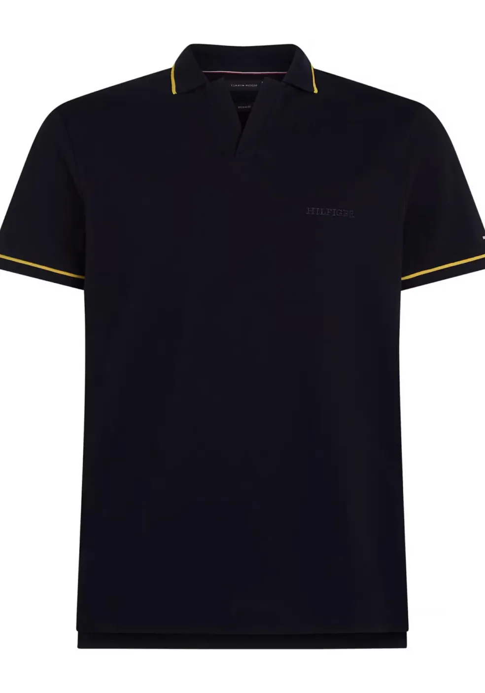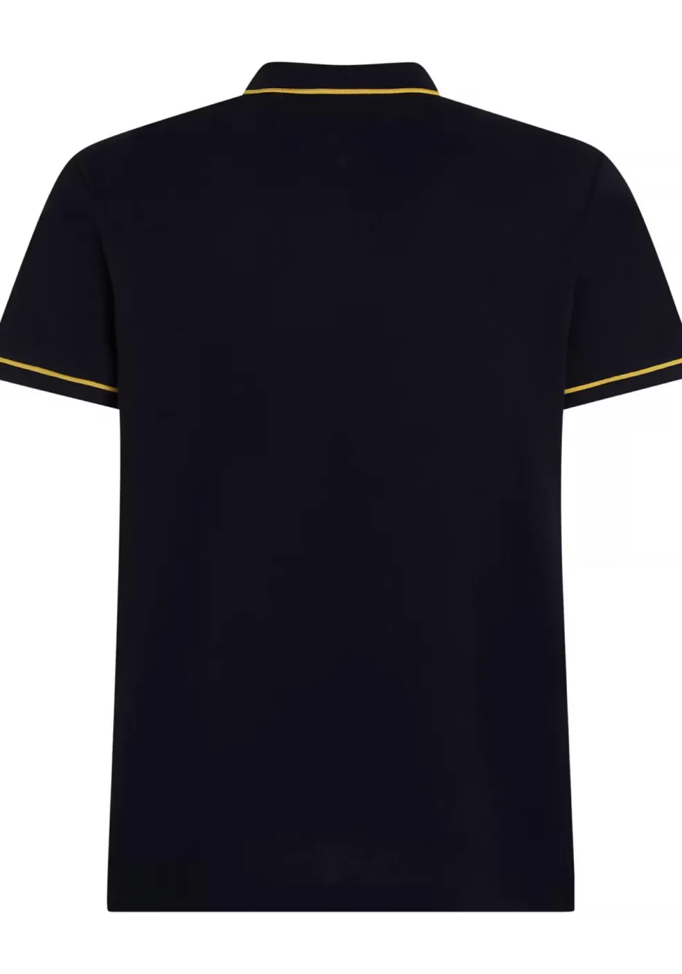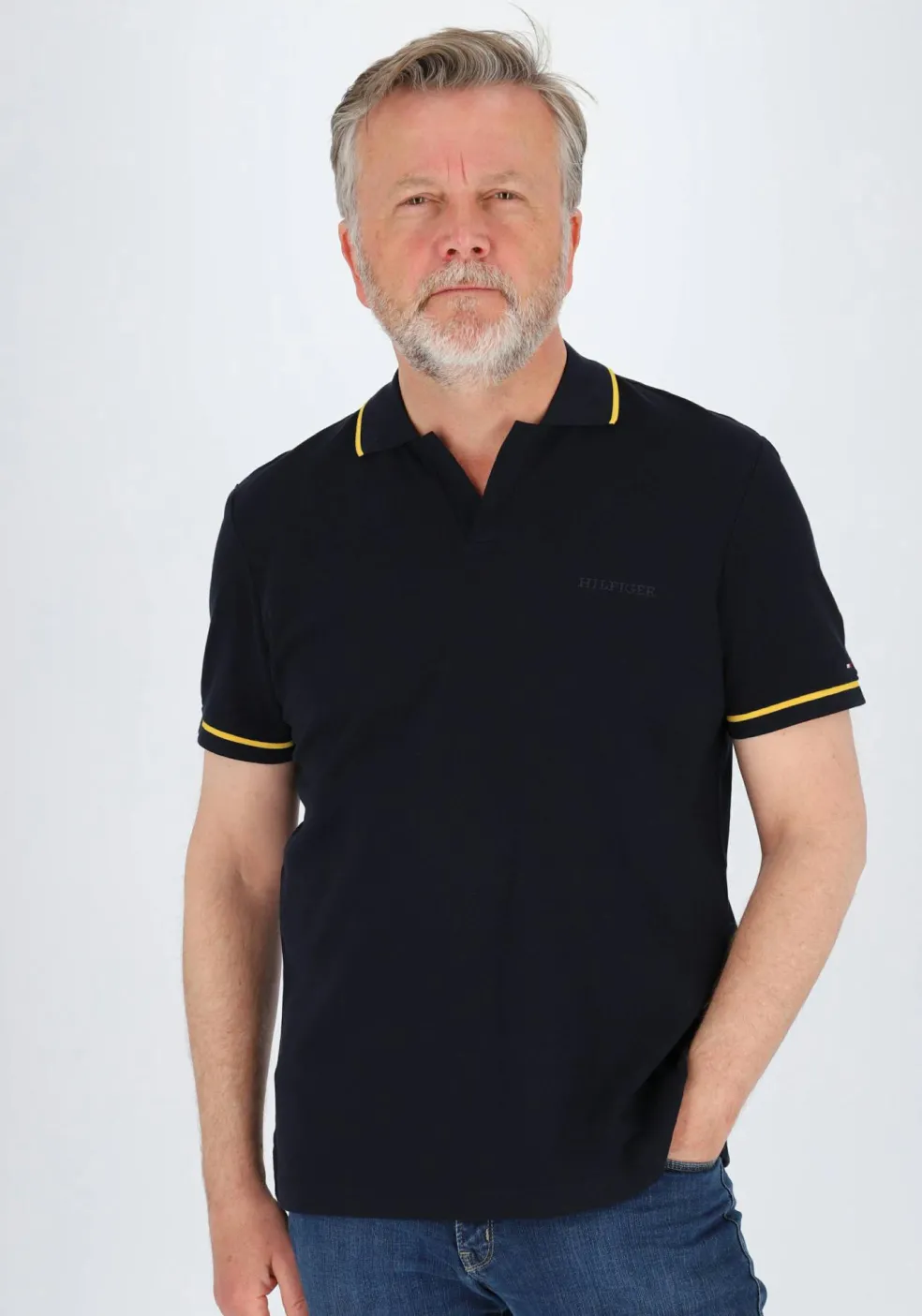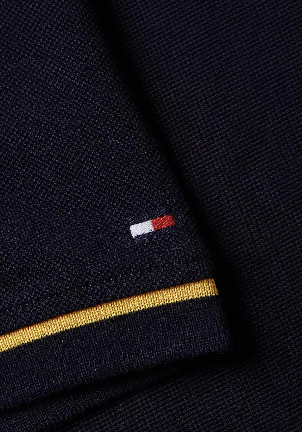 Deze Tommy Hilfiger regular fit polo is een moderne, soepel vallende polo in een regular fit pasvorm die slechts heel licht getailleerd is. De heren polo van Tommy Hilfiger heeft korte mouwen. Heerlijk voor de warme dagen, maar ook fijn voor de mannen die gewoon graag een polo shirt met korte mouwen dragen. Door de uitvoering in een jersey weving die we kennen van bijvoorbeeld T-shirts, is deze polo heerlijk zacht, elastisch en zeer comfortabel om te dragen. Dit moderne model is aan de achterkant iets langer dan aan de voorkant en heeft zij splitjes. Uitgevoerd met een knooplijst zonder knopen, geribde boordjes bij de mouwen en een geribde kraag. Zowel de kraag als de mouwen zijn afgewerkt met een contrasterend streepje. Op de linker borst bevindt zich een subtiel geborduurd Tommy Hilfiger logo.