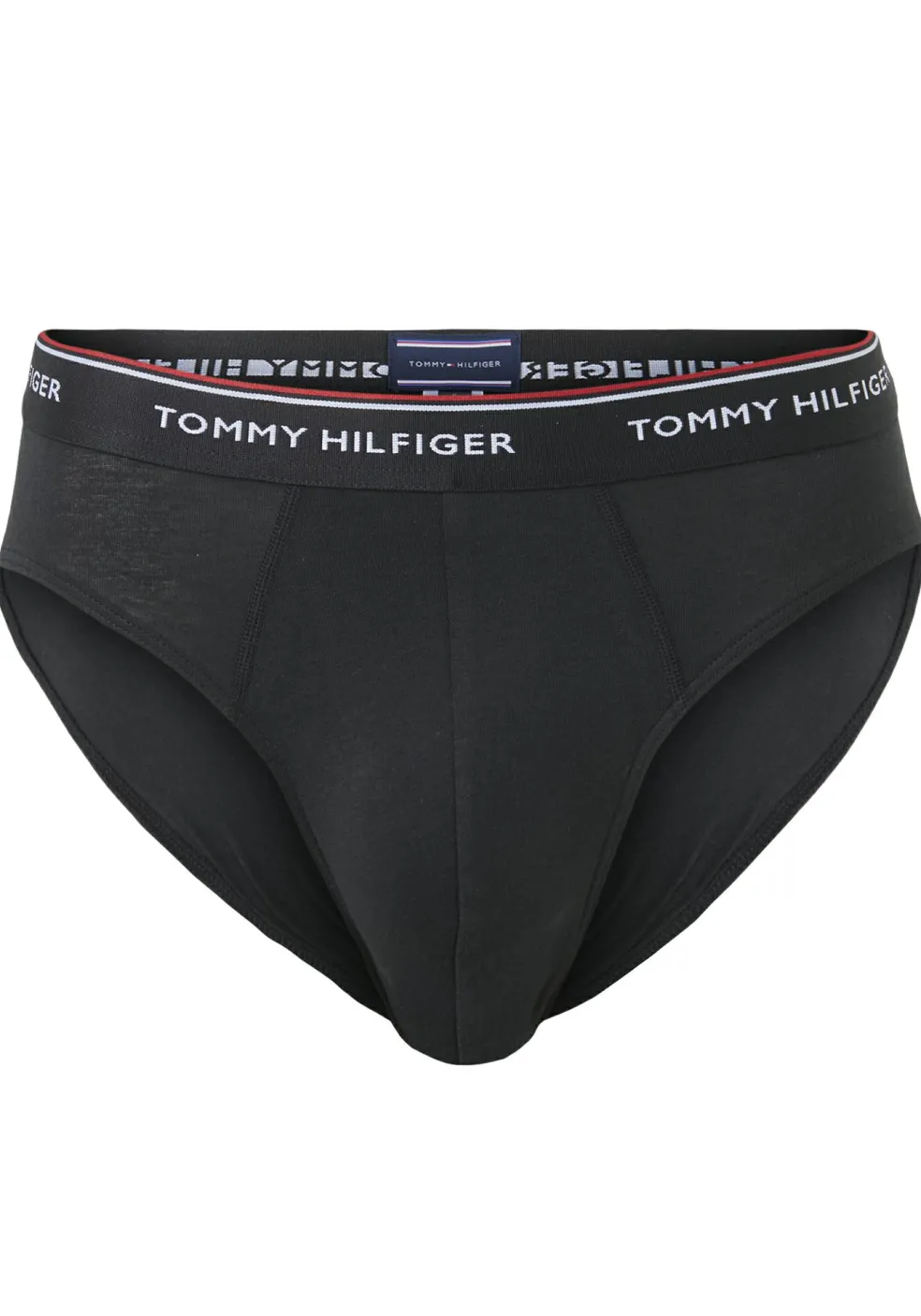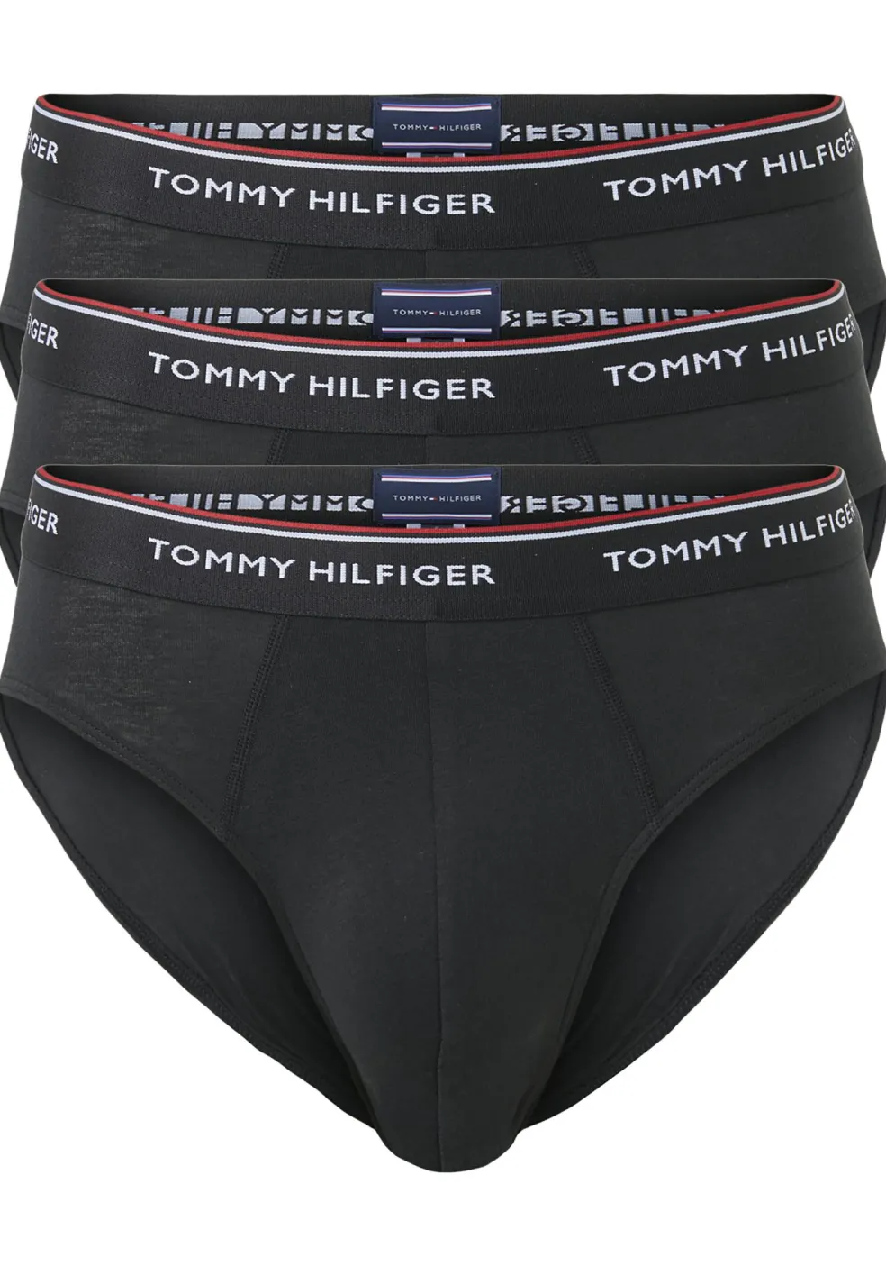 Set van drie zwarte basis slips zonder gulp van Tommy Hilfiger. Het katoenen model heeft een zwarte microfiber tailleband met Tommy Hilfiger rondom in het wit en de bekende rood-wit-blauwe rand. Dit model draagt comfortabel en door de iets hoger opgesneden onderkant geeft het voldoende bewegingsvrijheid voor elke gelegenheid. De slip ademt en absorbeert, de voorkant is dubbel uitgevoerd voor extra ondersteuning. Nu in een 3 pack met 3 zwarte exemplaren. Ook verkrijgbaar in andere kleuren.