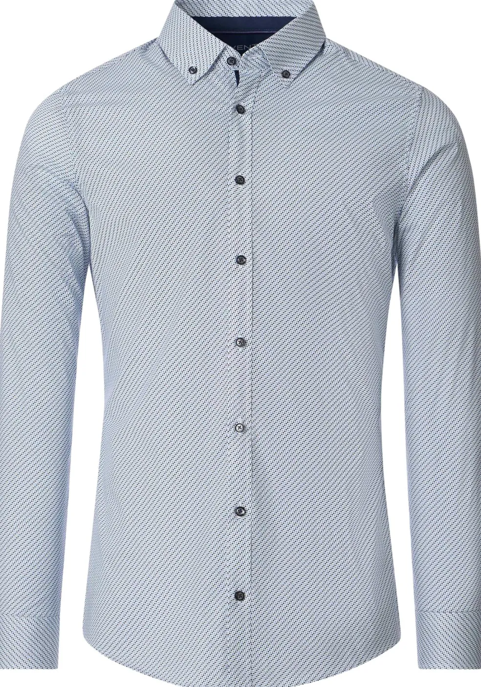 Strak getailleerd modieus body fit overhemd. Dit heren overhemd van VENTI heeft lange mouwen in een standaard mouwlengte. Door de uitvoering in een poplin weving is de stof glad, zacht, soepel en egaal. Dit is een van de meest gebruikte wevingen voor overhemden. Het shirt heeft een sportieve button-down kraag die meestal zonder stropdas gedragen wordt. Door de knoopjes in de boordpunten waarmee de punten van de kraag vastgezet kunnen worden aan het hemd, blijft de kraag mooi zitten. De easy iron kwaliteit van de stof zorgt ervoor dat het slechts licht gestreken hoeft te worden voor een prachtig glad resultaat. Voor een moderne uitstraling ontbreekt de borstzak bij dit shirt.