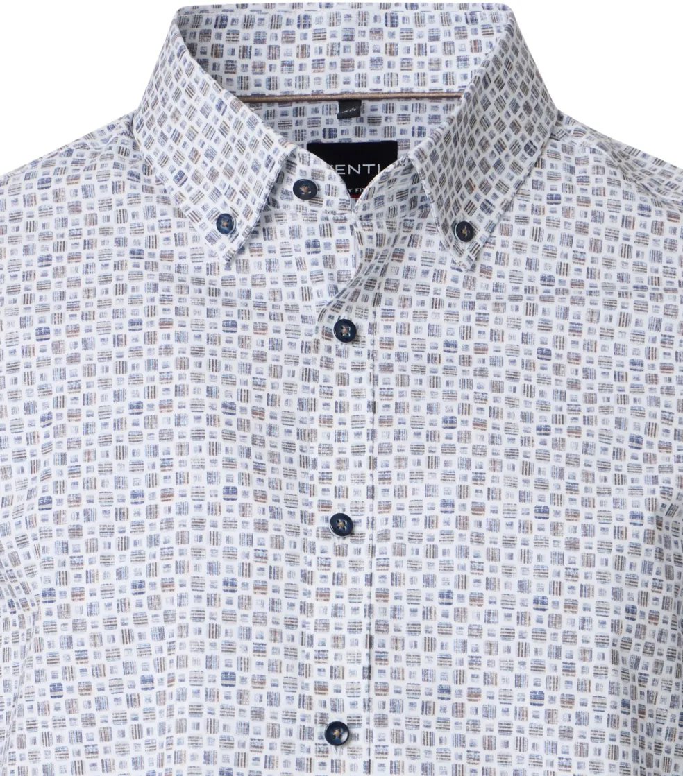 Strak getailleerd modieus body fit overhemd. Dit heren overhemd van VENTI heeft lange mouwen in een standaard mouwlengte. Door de uitvoering in een poplin weving is de stof glad, zacht, soepel en egaal. Dit is een van de meest gebruikte wevingen voor overhemden. Het shirt heeft een sportieve button-down kraag die meestal zonder stropdas gedragen wordt. Door de knoopjes in de boordpunten waarmee de punten van de kraag vastgezet kunnen worden aan het hemd, blijft de kraag mooi zitten. De easy iron kwaliteit van de stof zorgt ervoor dat het slechts licht gestreken hoeft te worden voor een prachtig glad resultaat. Voor een moderne uitstraling ontbreekt de borstzak bij dit shirt.