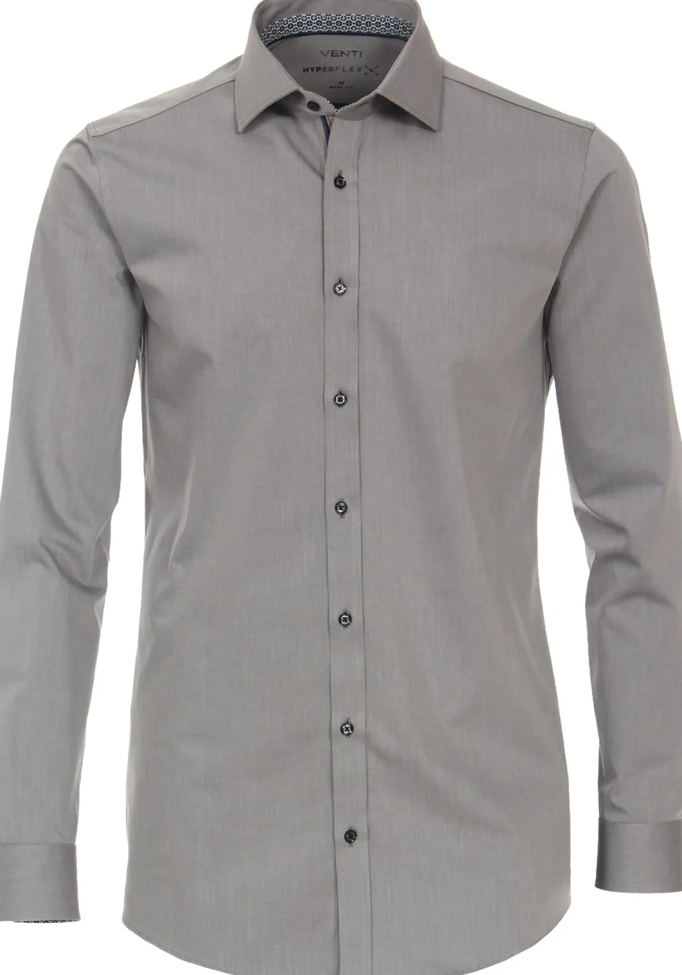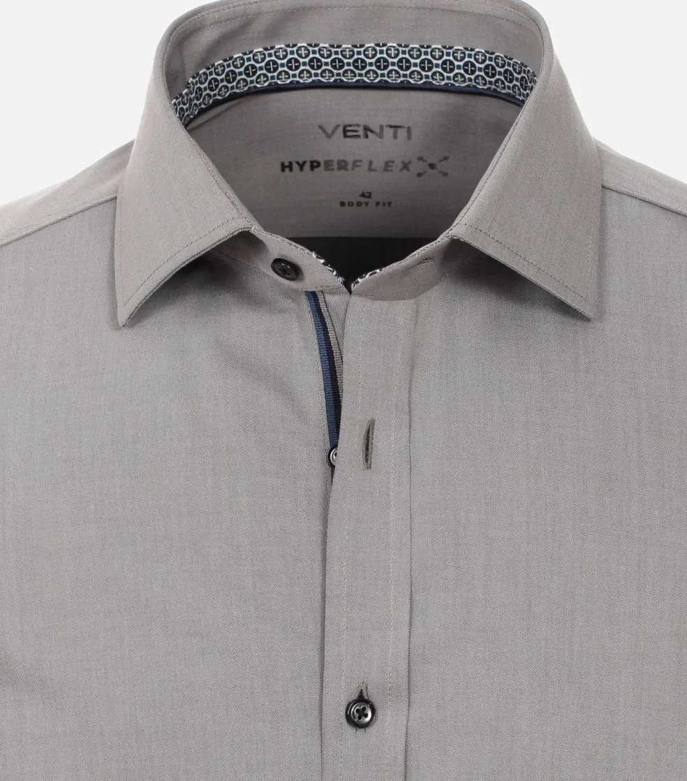 Strak getailleerd modieus body fit overhemd. Dit heren overhemd van VENTI heeft lange mouwen in een standaard mouwlengte. Door de uitvoering in een twill of keper weving is de stof dicht en sterk. Twill is eenvoudig te herkennen aan het diagonale weefpatroon, wat ervoor zorgt dat de draden heel dicht op elkaar zitten en dus minder licht doorlaten. Daardoor is de stof minder doorschijnend dan bijvoorbeeld een poplin weving. Het shirt heeft een normale Kent kraag waarbij de boordpunten recht naar beneden wijzen en niet ver uit elkaar staan. Deze kraagvorm is ideaal om zo te dragen maar ook perfect te combineren met een stropdas. De easy iron kwaliteit van de stof zorgt ervoor dat het slechts licht gestreken hoeft te worden voor een prachtig glad resultaat. Voor een moderne uitstraling ontbreekt de borstzak bij dit shirt.