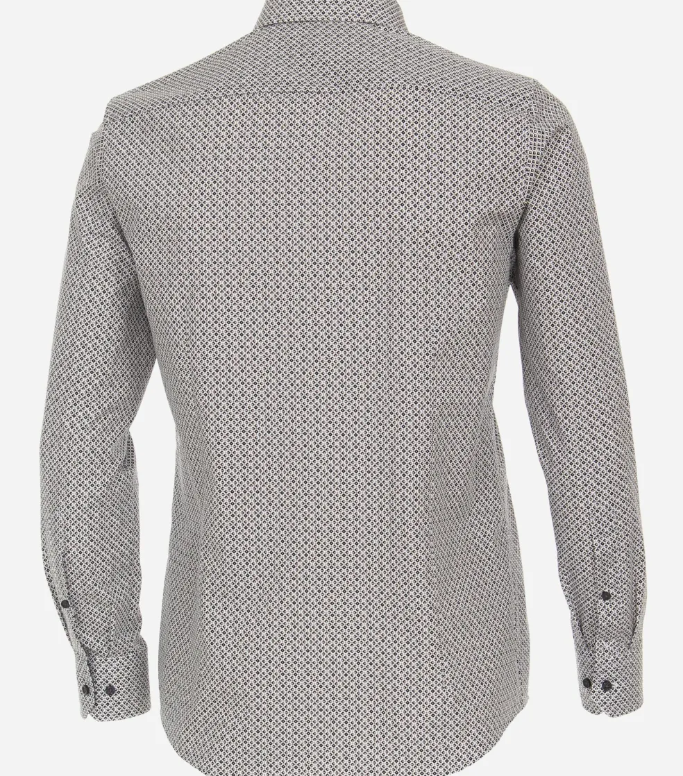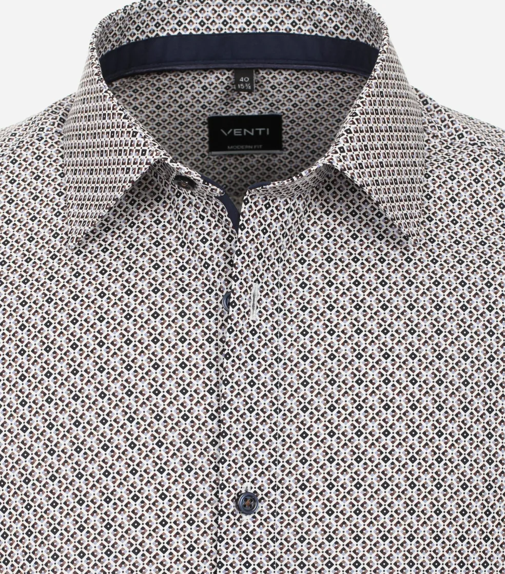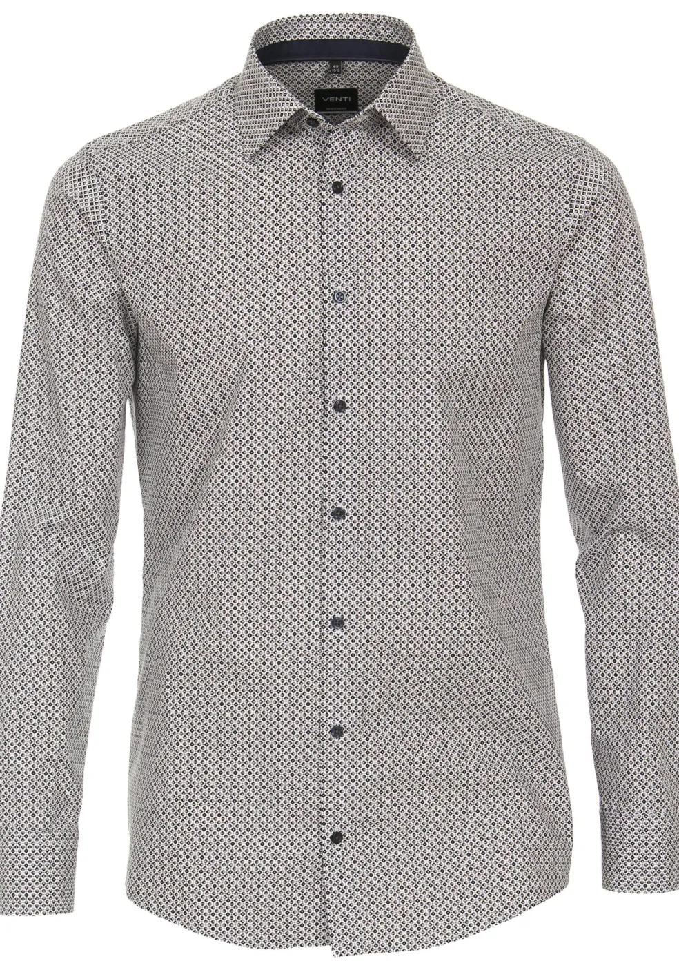 Modieus getailleerd overhemd in een fijne kwaliteit. Dit heren overhemd van VENTI heeft lange mouwen in een standaard mouwlengte. Door de uitvoering in een poplin weving is de stof glad, zacht, soepel en egaal. Dit is een van de meest gebruikte wevingen voor overhemden. Het shirt heeft een normale Kent kraag waarbij de boordpunten recht naar beneden wijzen en niet ver uit elkaar staan. Deze kraagvorm is ideaal om zo te dragen maar ook perfect te combineren met een stropdas. De easy iron kwaliteit van de stof zorgt ervoor dat het slechts licht gestreken hoeft te worden voor een prachtig glad resultaat. Voor een moderne uitstraling ontbreekt de borstzak bij dit shirt.