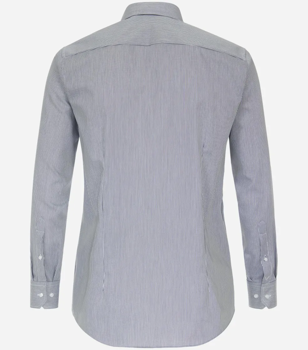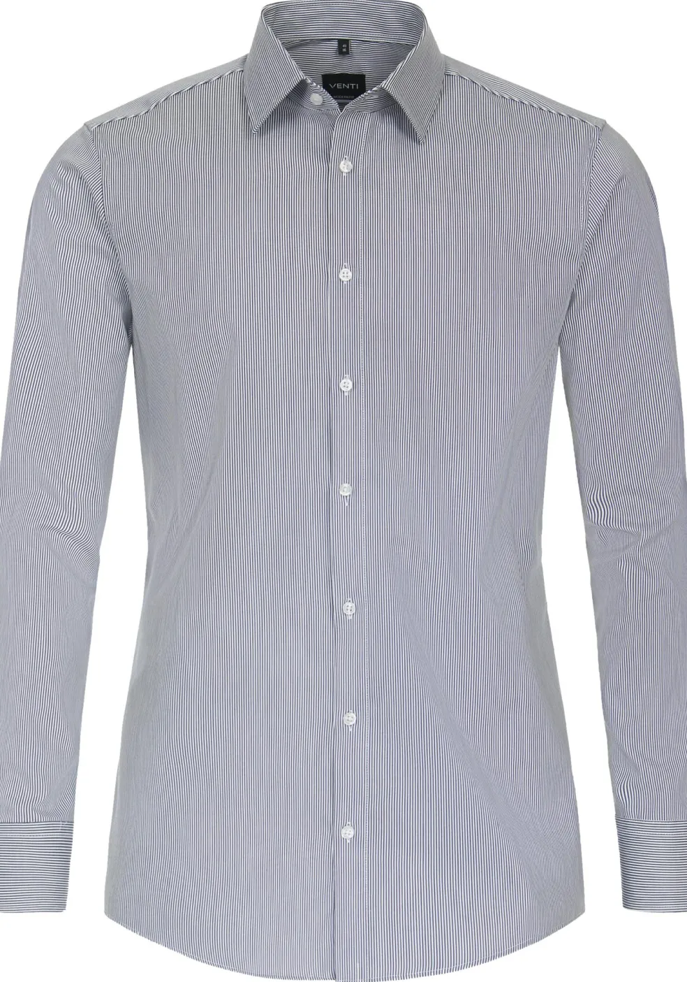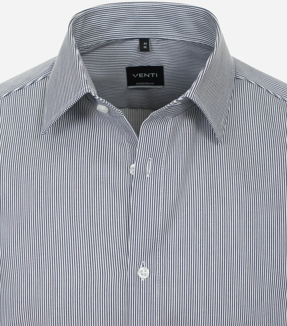 Modieus getailleerd overhemd in een fijne kwaliteit. Dit heren overhemd van VENTI heeft lange mouwen in een standaard mouwlengte. Door de uitvoering in een twill of keper weving is de stof dicht en sterk. Twill is eenvoudig te herkennen aan het diagonale weefpatroon, wat ervoor zorgt dat de draden heel dicht op elkaar zitten en dus minder licht doorlaten. Daardoor is de stof minder doorschijnend dan bijvoorbeeld een poplin weving. Het shirt heeft een normale Kent kraag waarbij de boordpunten recht naar beneden wijzen en niet ver uit elkaar staan. Deze kraagvorm is ideaal om zo te dragen maar ook perfect te combineren met een stropdas. De easy iron kwaliteit van de stof zorgt ervoor dat het slechts licht gestreken hoeft te worden voor een prachtig glad resultaat. Voor een moderne uitstraling ontbreekt de borstzak bij dit shirt.