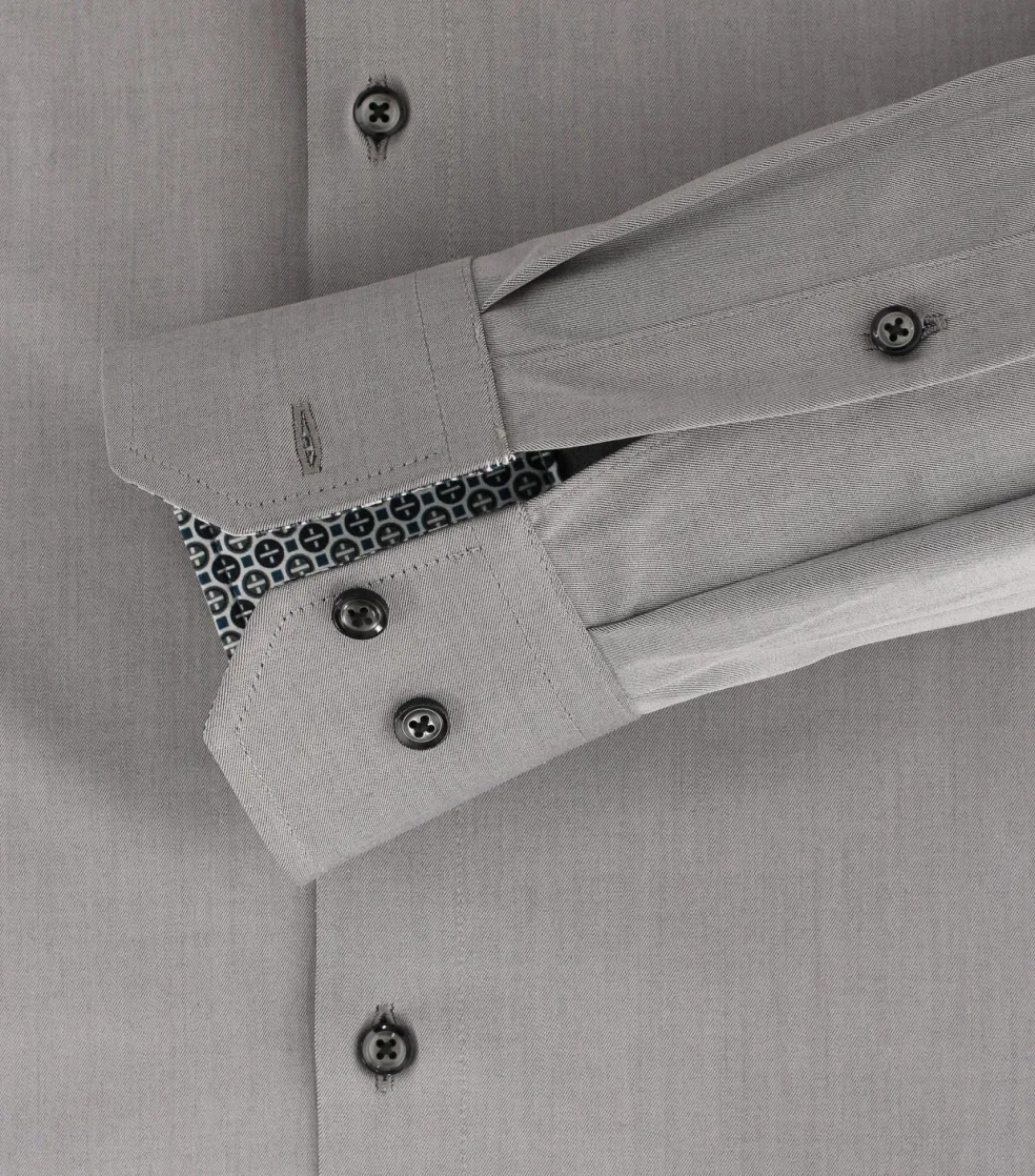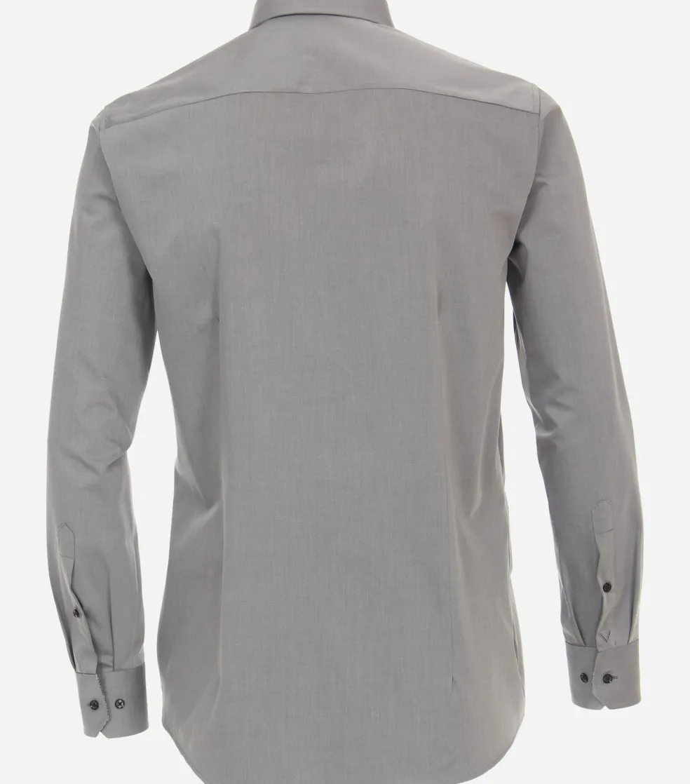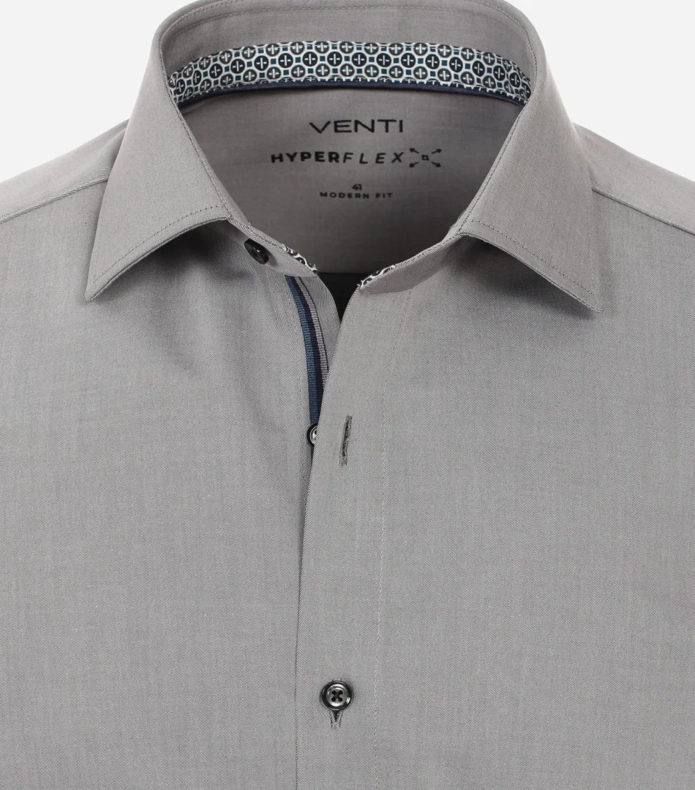 Modieus getailleerd overhemd in een fijne kwaliteit. Dit heren overhemd van VENTI heeft lange mouwen in een standaard mouwlengte. Door de uitvoering in een twill of keper weving is de stof dicht en sterk. Twill is eenvoudig te herkennen aan het diagonale weefpatroon, wat ervoor zorgt dat de draden heel dicht op elkaar zitten en dus minder licht doorlaten. Daardoor is de stof minder doorschijnend dan bijvoorbeeld een poplin weving. Het shirt heeft een normale Kent kraag waarbij de boordpunten recht naar beneden wijzen en niet ver uit elkaar staan. Deze kraagvorm is ideaal om zo te dragen maar ook perfect te combineren met een stropdas. De easy iron kwaliteit van de stof zorgt ervoor dat het slechts licht gestreken hoeft te worden voor een prachtig glad resultaat. Voor een moderne uitstraling ontbreekt de borstzak bij dit shirt.